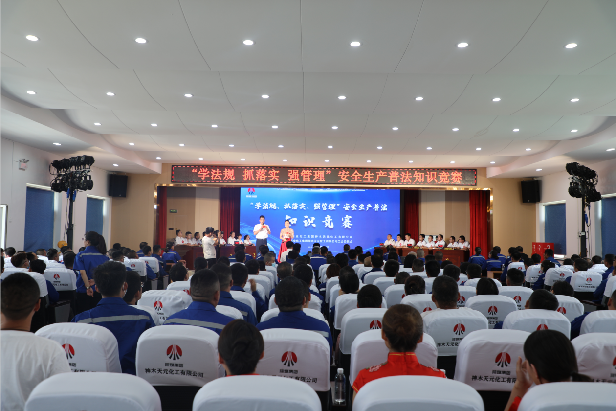 6月8日,神木煤化工天元公司舉辦“學法規(guī)、抓落實、強管理”安全生產普法知識競賽。神木煤化工副總經理問緒忠,神木市應急管理局副局長王銳、執(zhí)法大隊隊長王飛,神木市高新技術產業(yè)開發(fā)區(qū)應急管理局局長馬愛平,天元公司領導班子成員及員工共計260余人觀看比賽。