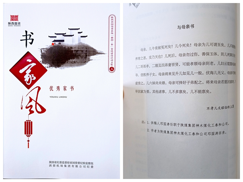 近日,神木煤化工泰和公司職工鄧國濤供稿“家書”榮獲省國資委系統“德潤三秦”家風建設優秀家書一等獎。