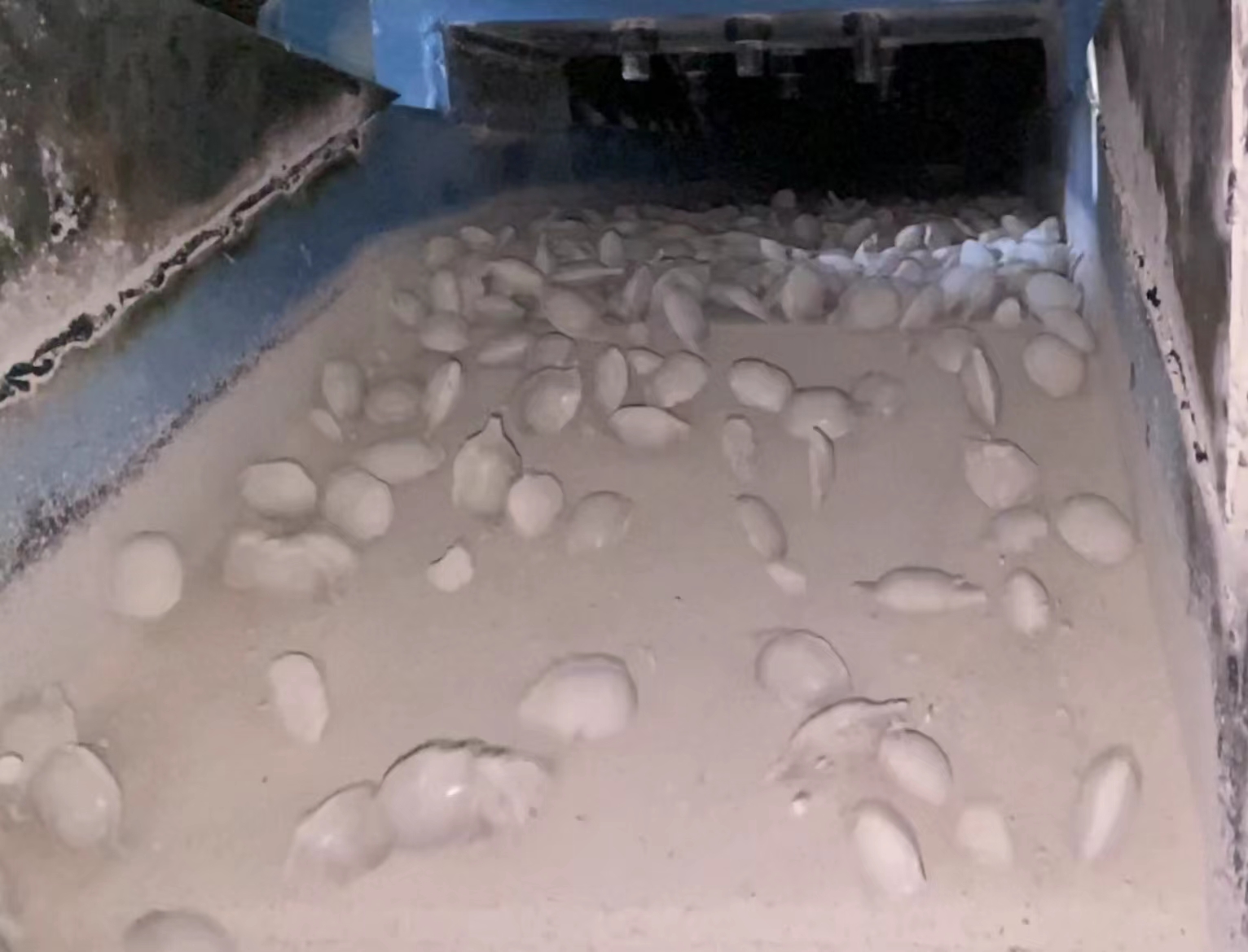 石灰粉的粒度直接影響成球率和粉球的強度,石灰粉末粒度如達不到其要求,則成球效果很差,石灰粉球的強度也很差,因此高壓對輥壓球機對石灰粉末粒度組成有較高要求。鑒于此,經過技術人員多次深入研究石灰粉末綜合利用工作,對石灰粉的粒度分布、強度做了測定得出:粒度為80-200μm,通過不同高度石灰粉球自由落體及壓球試驗測定其強度,最終測評強度為1.5米、308N 壓力下不碎基本滿足高壓對輥成球機對物料粒度的要求。