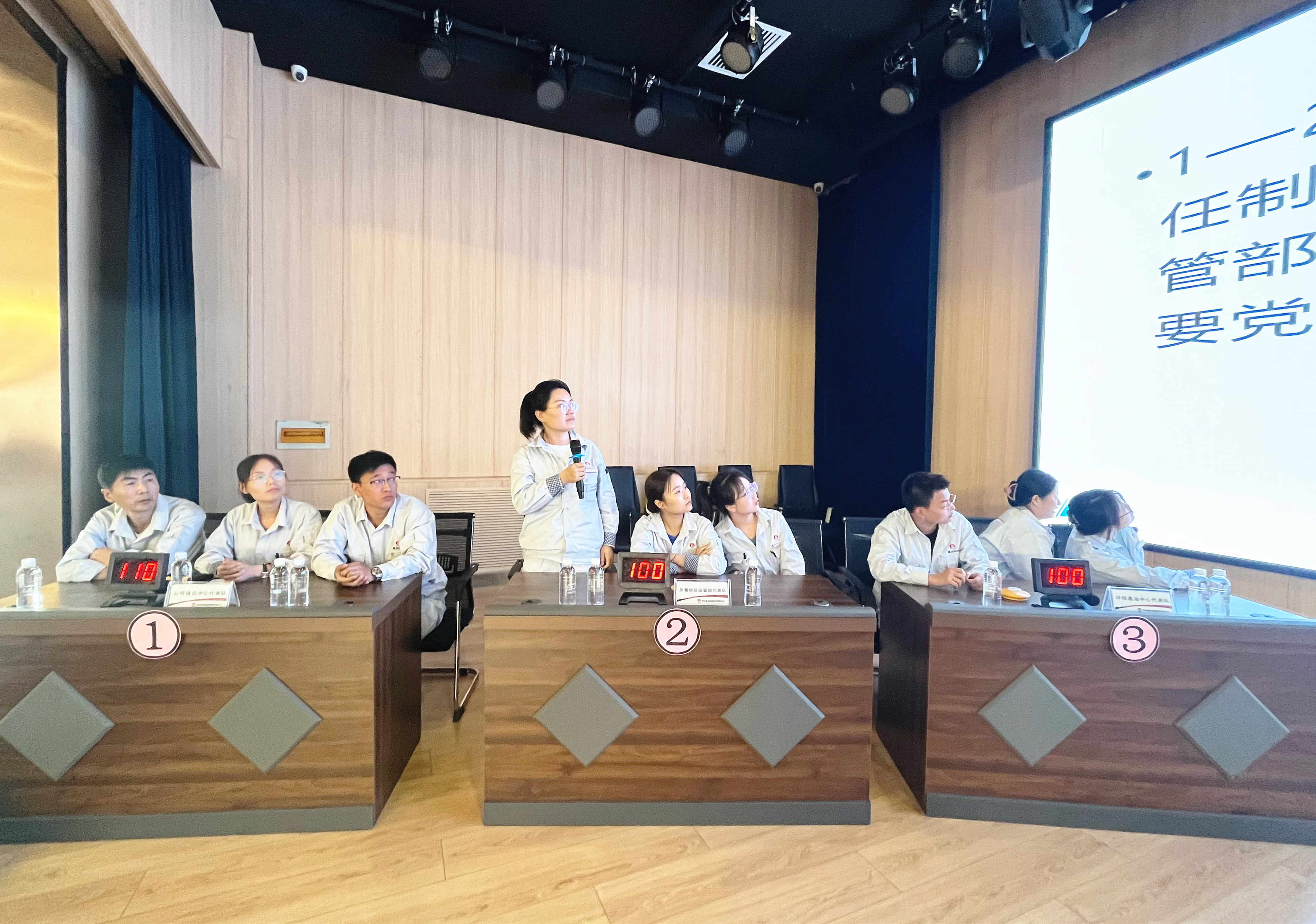 近日,神木煤化工富油公司成功舉辦安全知識暨事故案例講評競賽,來自各生產中心的六支代表隊參賽選手在場上進行了激烈比拼。富油公司黨委副書記、紀委書記、工會主席趙志宏,副總經理王智榮,HSE總監孟廣明,以及公司各部門、中心工作人員觀摩了比賽實況。