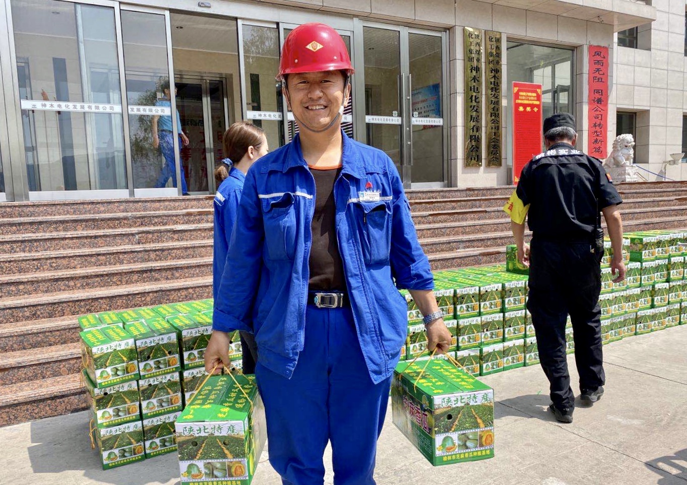6月9日上午,神木煤化工電化公司工會開展了“夏日送清涼”活動,公司黨委副書記、工會主席任建軍及工會副主席賀文強在辦公樓前為堅守在崗位的全體職工發放了芝麻香瓜共300多箱,讓職工感受到“娘家人”的關懷,給這個炎熱的夏天增加了一點點甜。