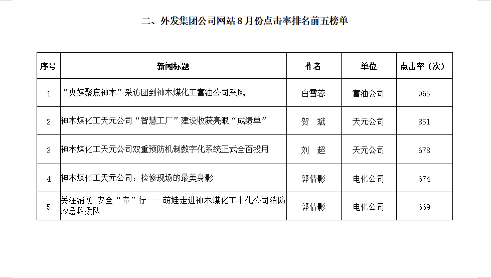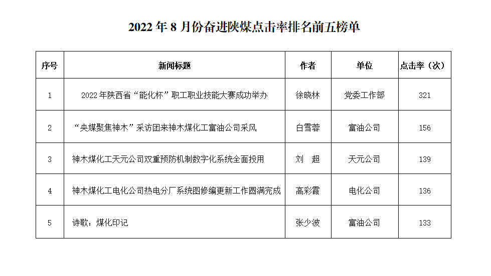 關(guān)于2022年8月份神木煤化工公司發(fā)稿及優(yōu)秀稿件評(píng)選情況的通報(bào)