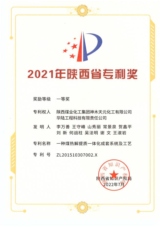 近日,從陜西省知識(shí)產(chǎn)權(quán)局獲悉,神木煤化工天元公司“一種煤熱解提質(zhì)一體化成套系統(tǒng)及工藝”發(fā)明專(zhuān)利榮獲2021年陜西省專(zhuān)利獎(jiǎng)一等獎(jiǎng)。