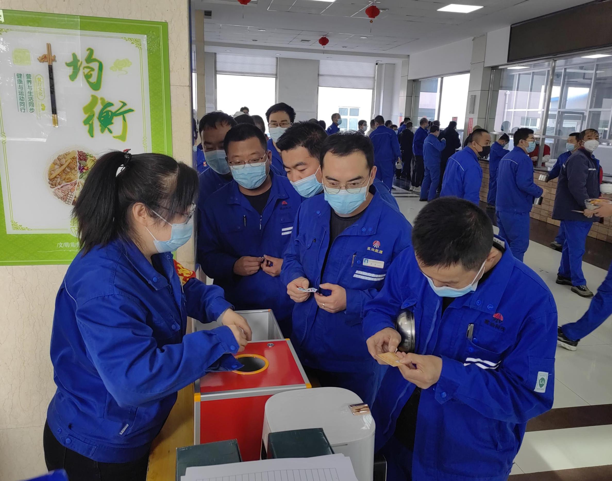 按照富油公司紀委“一起光盤 集卡有獎”刮刮樂活動的規則,在餐廳就餐的干部員工用餐完成一次“光盤”就可領取印有“光盤行動”宣傳標語的“光盤行動卡”一張,每天一種顏色,集滿5種顏色7張及以上卡片就可參與刮刮樂抽獎。每張“刮刮卡”分別印有“空氣炸鍋”“暖手寶”“加熱杯墊”“抽紙禮包”等獎品抽到后即可在用餐時間兌換相應實物一份;21日中午,近400名員工參加了“刮刮樂”抽獎活動,場面異常熱鬧。
