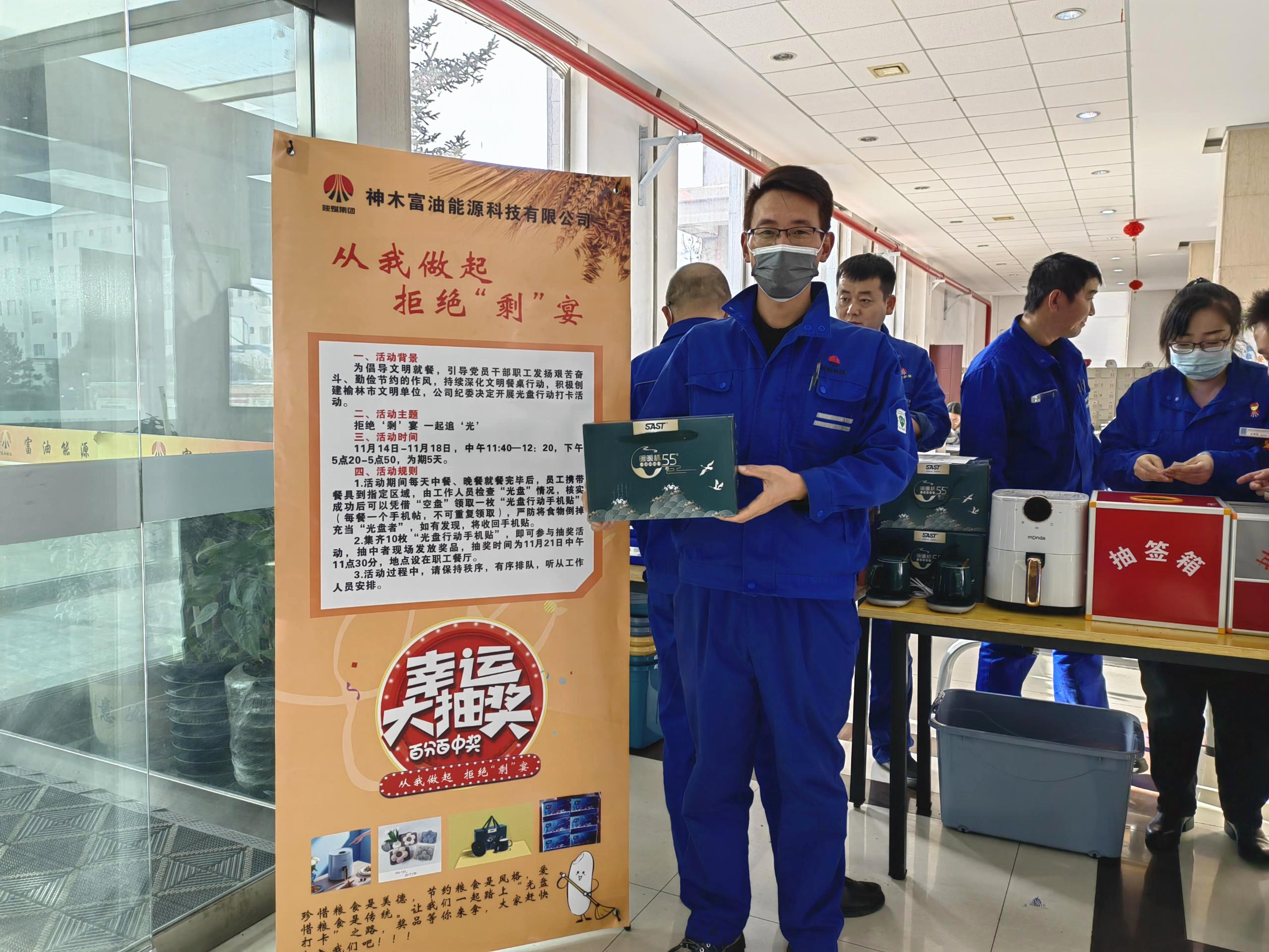 “我已經(jīng)連續(xù)5天光盤,獲得了紅、橙、藍、綠、紫五種顏色卡共10張,希望能抽到大獎。”抽獎現(xiàn)場的一名青年員工說。“果然有大獎,今天抽到了老婆心心念的空氣炸鍋,真開心啊!在今后的工作和生活中,我將用自身的實際行動帶動我周圍的同事、還有我的家人杜絕舌尖上的浪費。”保運中心蘇永紅開心的說。