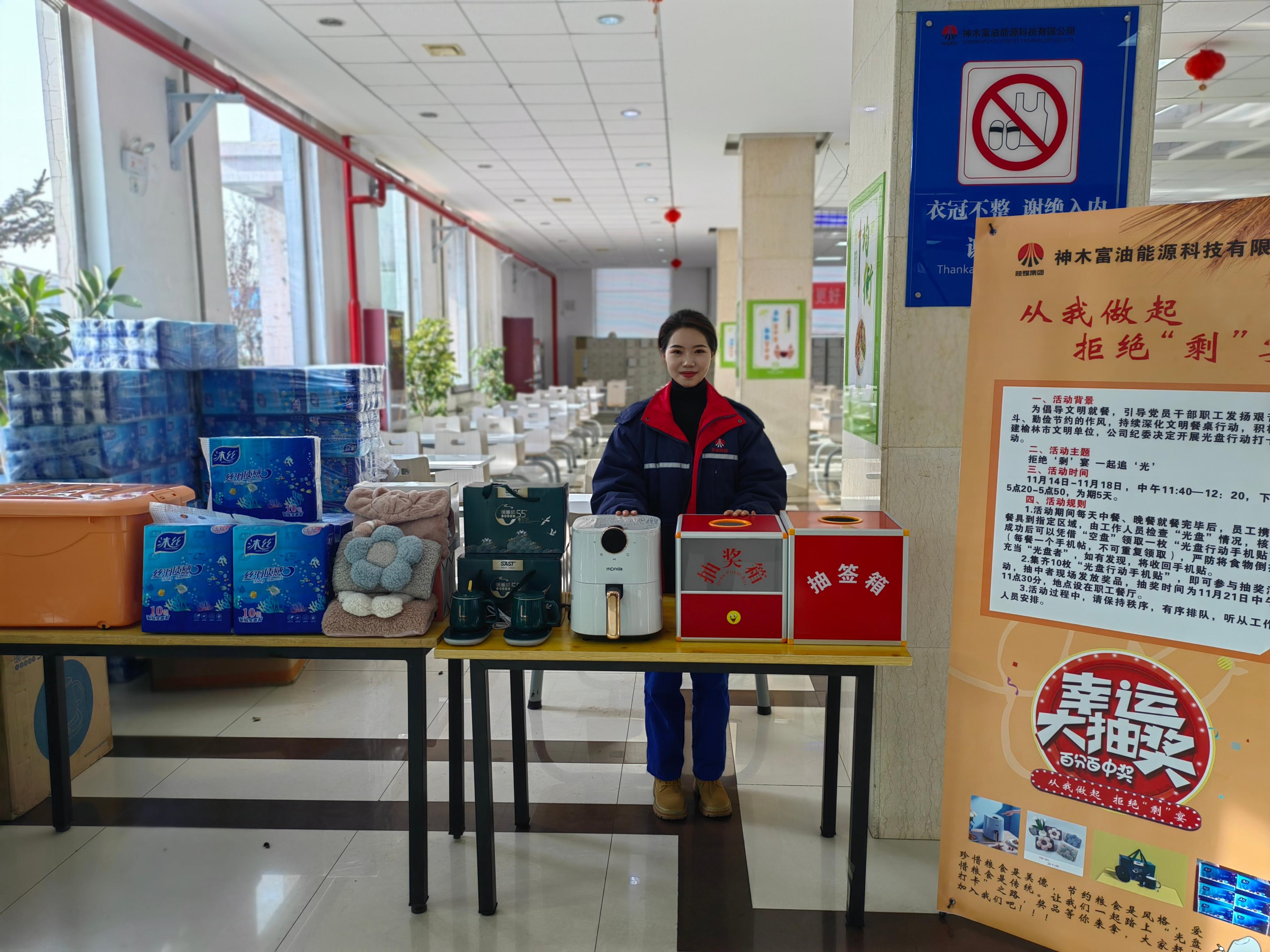 按照富油公司紀委“一起光盤 集卡有獎”刮刮樂活動的規(guī)則,在餐廳就餐的干部員工用餐完成一次“光盤”就可領(lǐng)取印有“光盤行動”宣傳標語的“光盤行動卡”一張,每天一種顏色,集滿5種顏色7張及以上卡片就可參與刮刮樂抽獎。每張“刮刮卡”分別印有“空氣炸鍋”“暖手寶”“加熱杯墊”“抽紙禮包”等獎品抽到后即可在用餐時間兌換相應(yīng)實物一份;21日中午,近400名員工參加了“刮刮樂”抽獎活動,場面異常熱鬧。