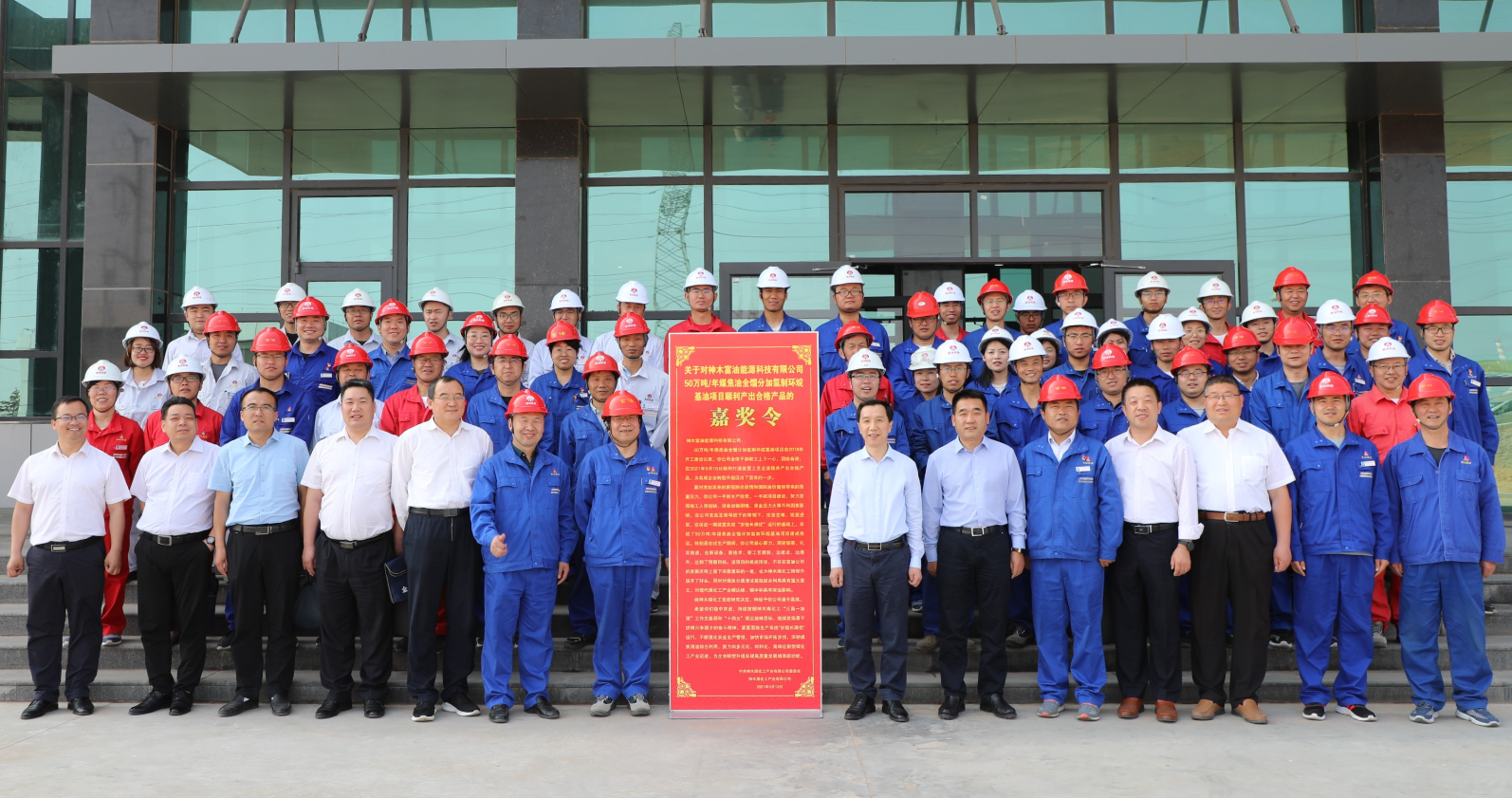 5月13日,公司頒發嘉獎令,對富油公司50萬噸/年煤焦油全餾分加氫制環烷基油項目在逆境中打通全部流程、并產出合格產品予以通令嘉獎。