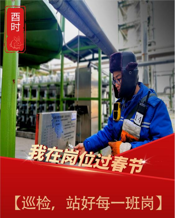 加氫車間馬龍龍:安全沒有假期,越是節日,越要繃緊“安全弦”。他認真檢查伴熱、巡檢漏點,更換巡檢牌,站好每一班崗。