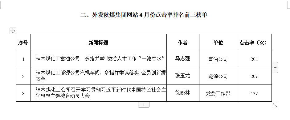 關于2023年4月份神木煤化工公司發稿及優秀稿件評選情況的通報