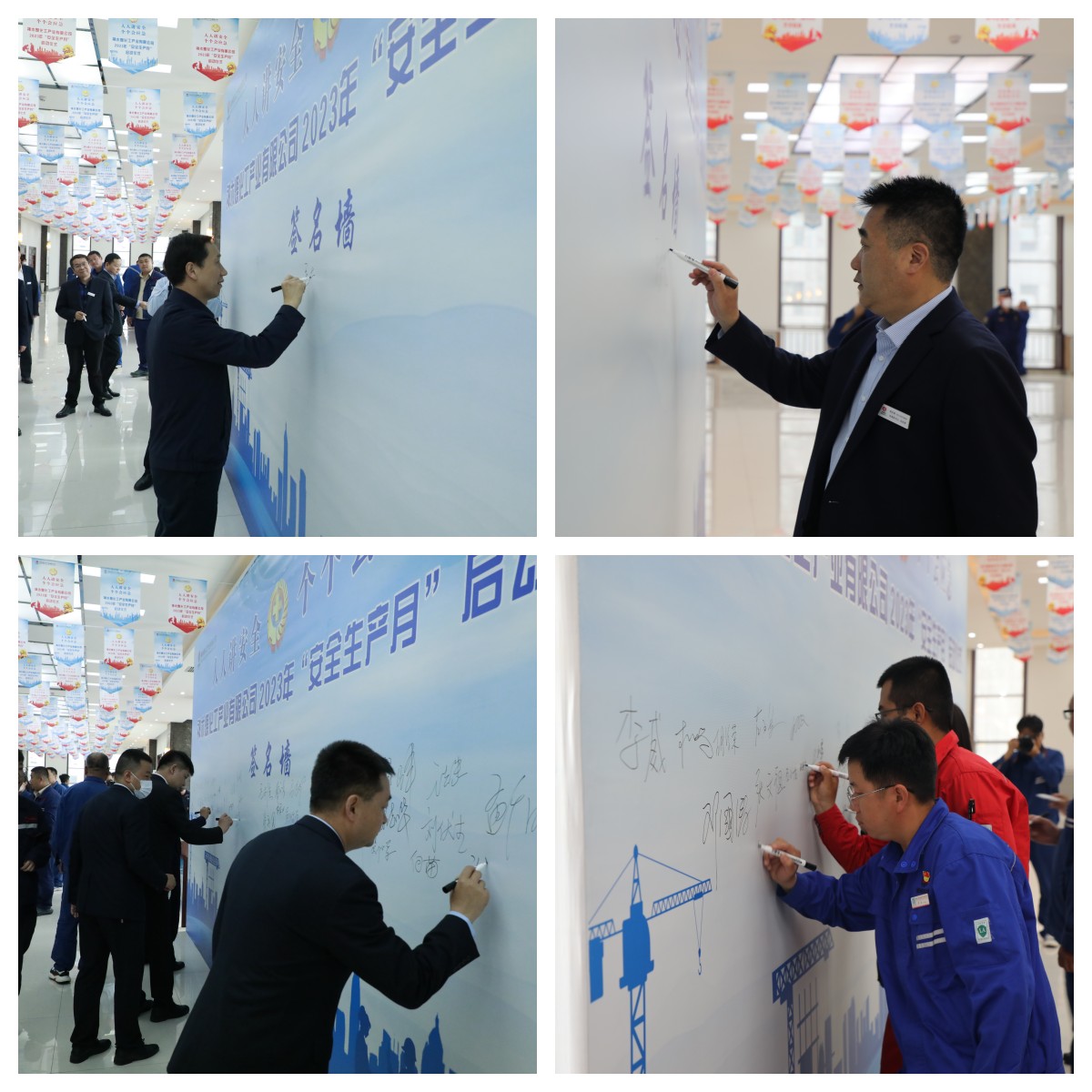 儀式上,神木煤化工公司黨委副書記、工會主席辛文輝帶領(lǐng)全體參會人員進行安全宣誓;神木煤化工公司副總經(jīng)理問緒忠安排部署了“安全生產(chǎn)月”重點工作;能源公司黨委書記、董事長張進峰代表基層單位作表態(tài)發(fā)言;全體與會人員在簽名墻上簽名。