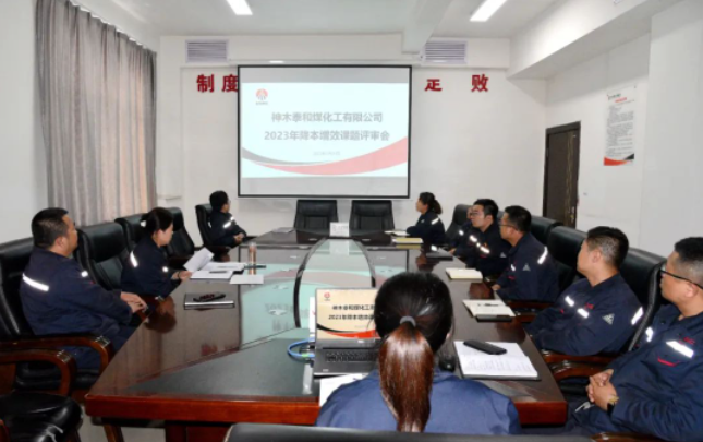 近日,神木煤化工泰和公司召開2023年降本增效課題評審會,各部門及車間負責人參加會議。