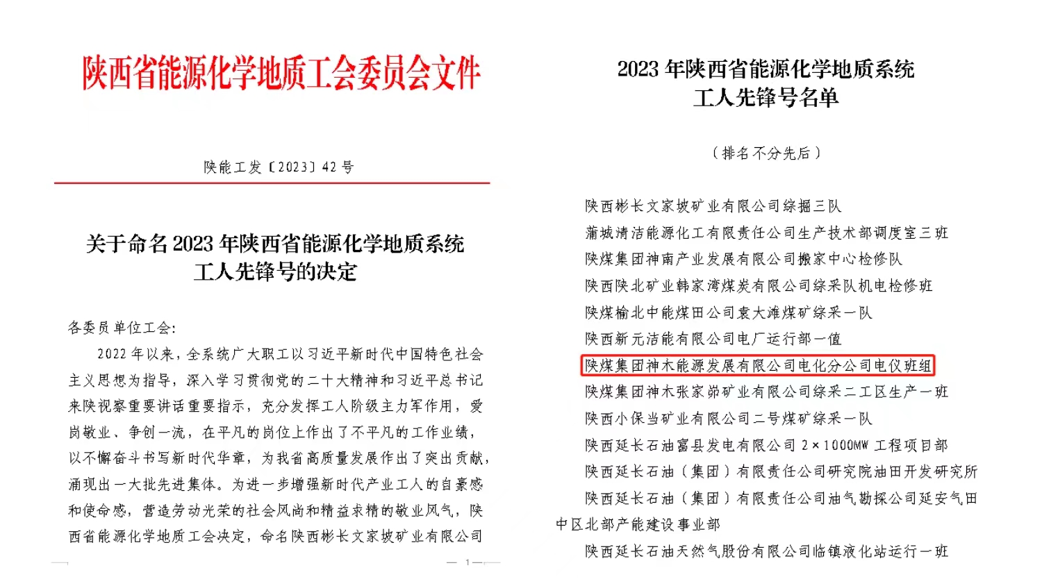 近日,陜西省能源化學地質系統工會印發《關于命名2023年陜西省能源化學地質系統工人先鋒號的決定》,神木煤化工能源公司電化分公司電儀班組榮獲“陜西省能源化學地質系統工人先鋒號”稱號。