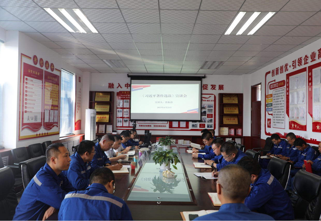 近日,神木煤化工公司副總經理張振濤到天元公司生產第二黨支部開展主題教育專題黨課和《習近平著作選讀》專題宣講,該支部全體黨員參加。