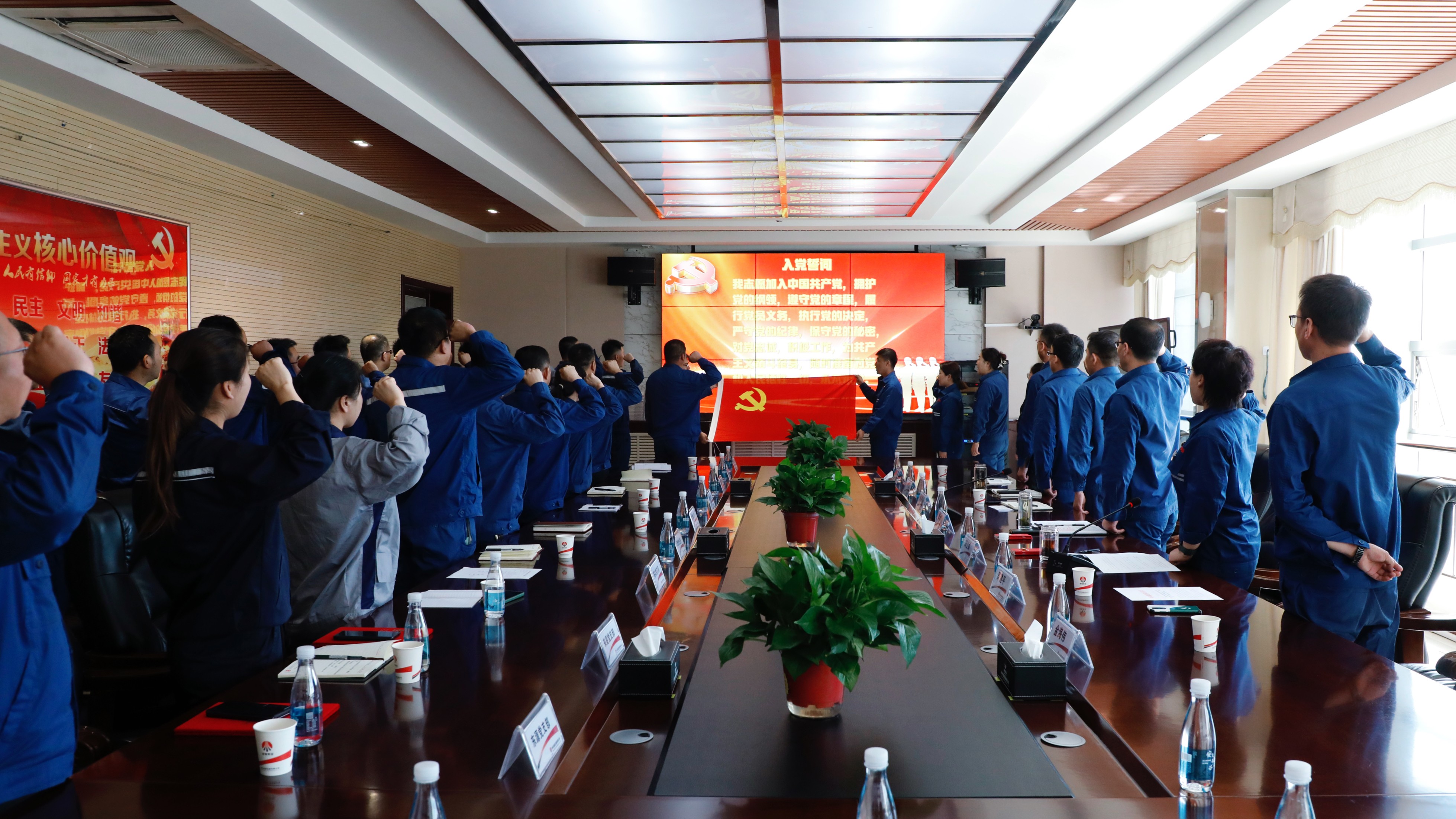 本年度預備黨員在會上進行了宣誓,全體黨員重溫入黨誓詞后,能源公司黨委書記、董事長張進峰,黨委副書記、紀委書記、工會主席閔立娟為他們贈送了《中國共產黨章程》并佩戴黨員徽章。大家紛紛表示深切感受到了公司黨委對自己的囑托,切實體會到了加入黨組織來的歸屬感和認同感。