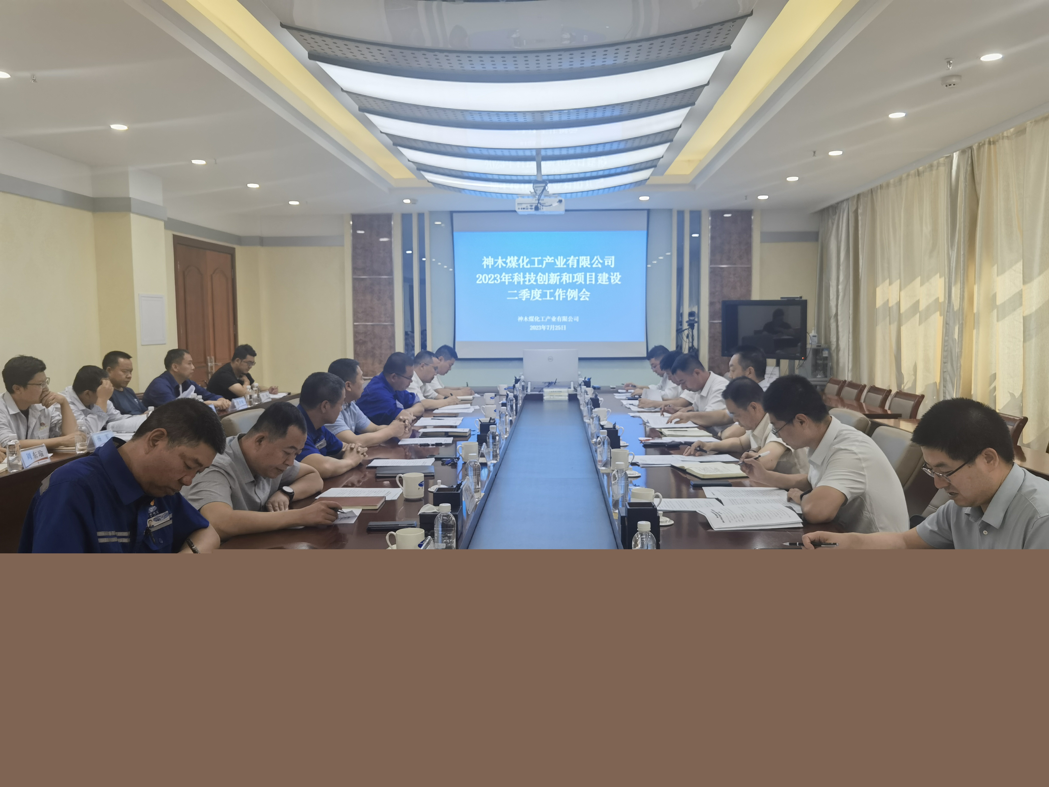 7月25日,神木煤化工公司組織召開了二季度科技創新和項目建設工作例會。公司副總經理侯衛斌,規劃發展部、財務資產部、法律與風險防控部及所屬各單位科技創新和項目建設工作分管領導、部門負責人共計24人參加了會議。
