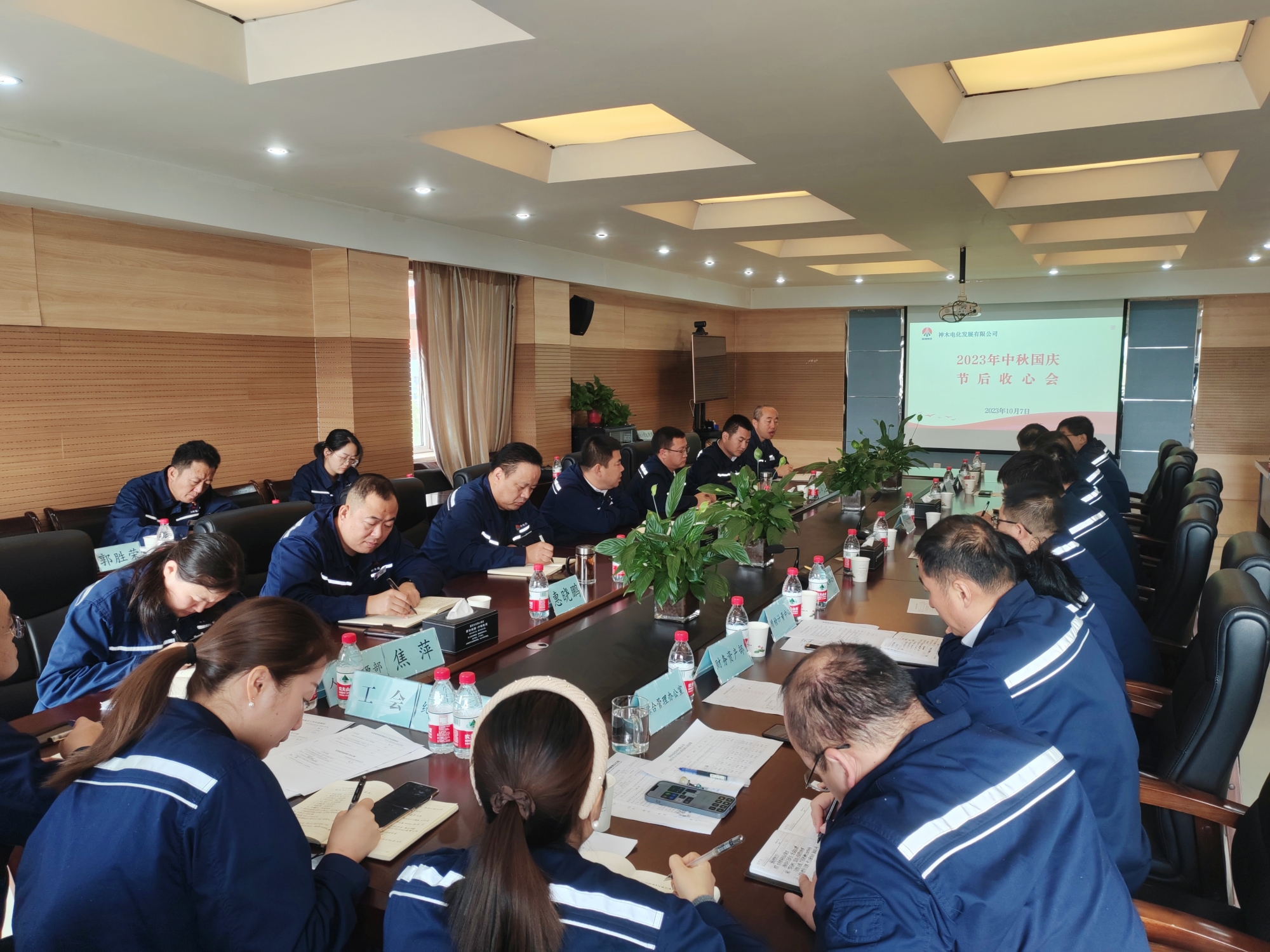 10月7日,神木煤化工電化公司組織召開節后收心會暨重點工作部署會,號召廣大干部職工迅速從節日氣氛中走出來,以飽滿的精神狀態投入四季度各項工作。會議由電化公司黨委書記、董事長、總經理劉伏生主持,電化公司領導班子成員、各部門負責人、各黨支部書記及相關管理人員共計30余人參加。