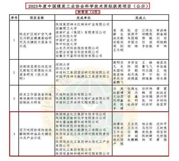 據(jù)了解,中國(guó)煤炭工業(yè)協(xié)會(huì)科學(xué)技術(shù)獎(jiǎng)每年評(píng)選一次,是煤炭行業(yè)的最高獎(jiǎng)項(xiàng)。此次入選成果為陜煤集團(tuán)也是公司重要科技成果,為行業(yè)解決了重大技術(shù)難題,產(chǎn)生了顯著的經(jīng)濟(jì)和社會(huì)效益,推動(dòng)了行業(yè)科技進(jìn)步,展示了陜煤集團(tuán)和公司的科技創(chuàng)新實(shí)力。