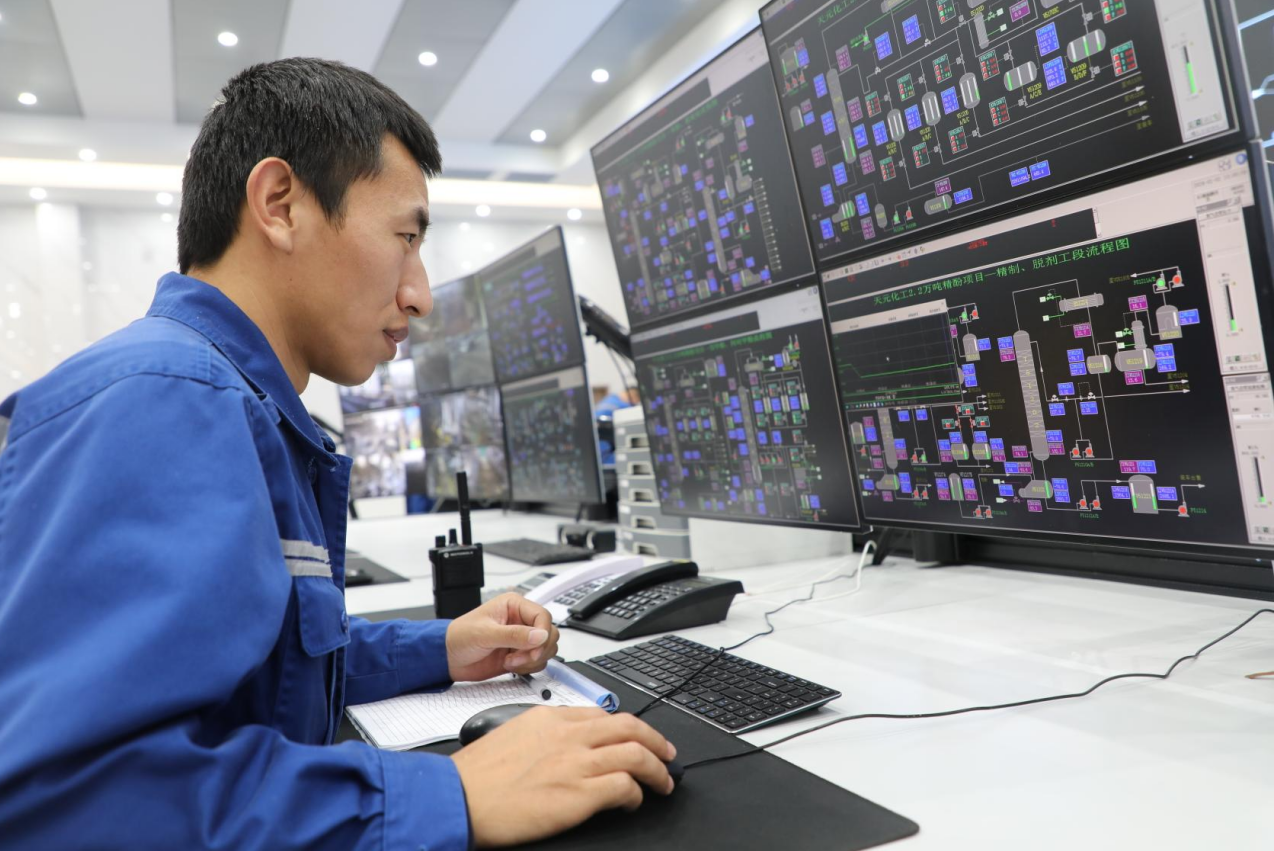 精酚車間王李旭在認(rèn)真監(jiān)盤