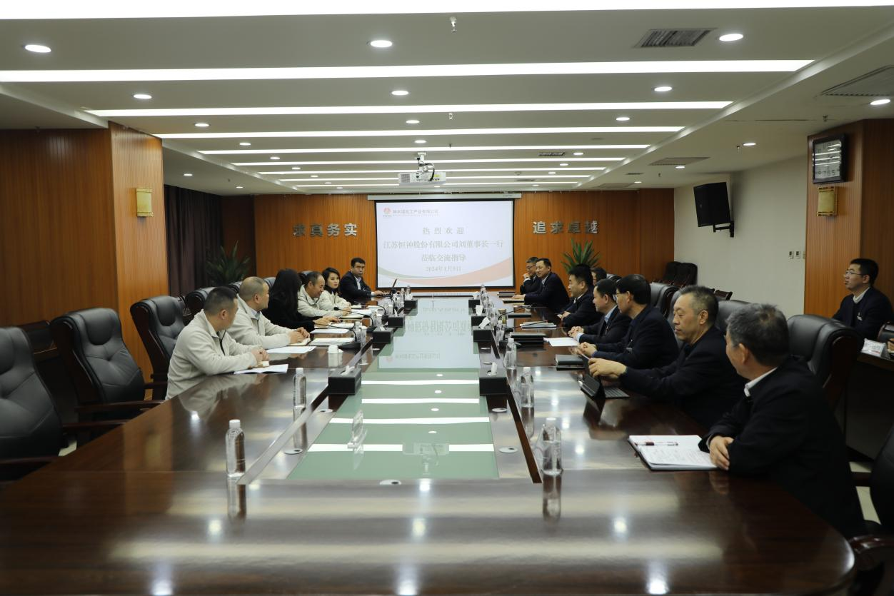 1月5日,江蘇恒神股份有限公司董事長劉瑾一行5人到訪公司對標(biāo)交流。公司黨委書記、董事長雷宏春,黨委副書記、總經(jīng)理辛文輝,其他領(lǐng)導(dǎo)班子成員及相關(guān)部門負(fù)責(zé)人參加對標(biāo)交流。