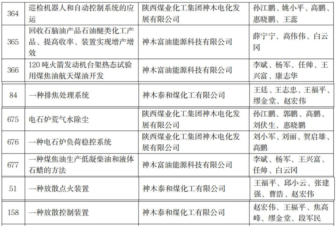 電化公司《巡檢機器人和自動控制系統的應運》、富油公司《回收石腦油產品石油醚類化工產品、提高收率、裝置實現增產增效》及《120噸火箭發動機臺架熱態試驗用煤焦油航天煤油開發 》3個項目榮獲一等獎;泰和公司《一種排焦處理系統》、富油公司《一種煤焦油生產低凝柴油和液體石蠟的方法》、電化公司《電石爐荒氣水除塵》和《一種電石爐負荷穩控系統》4個項目榮獲二等獎;泰和公司《一種放散點火裝置》和《一種放散控制裝置》2個項目榮獲三等獎。