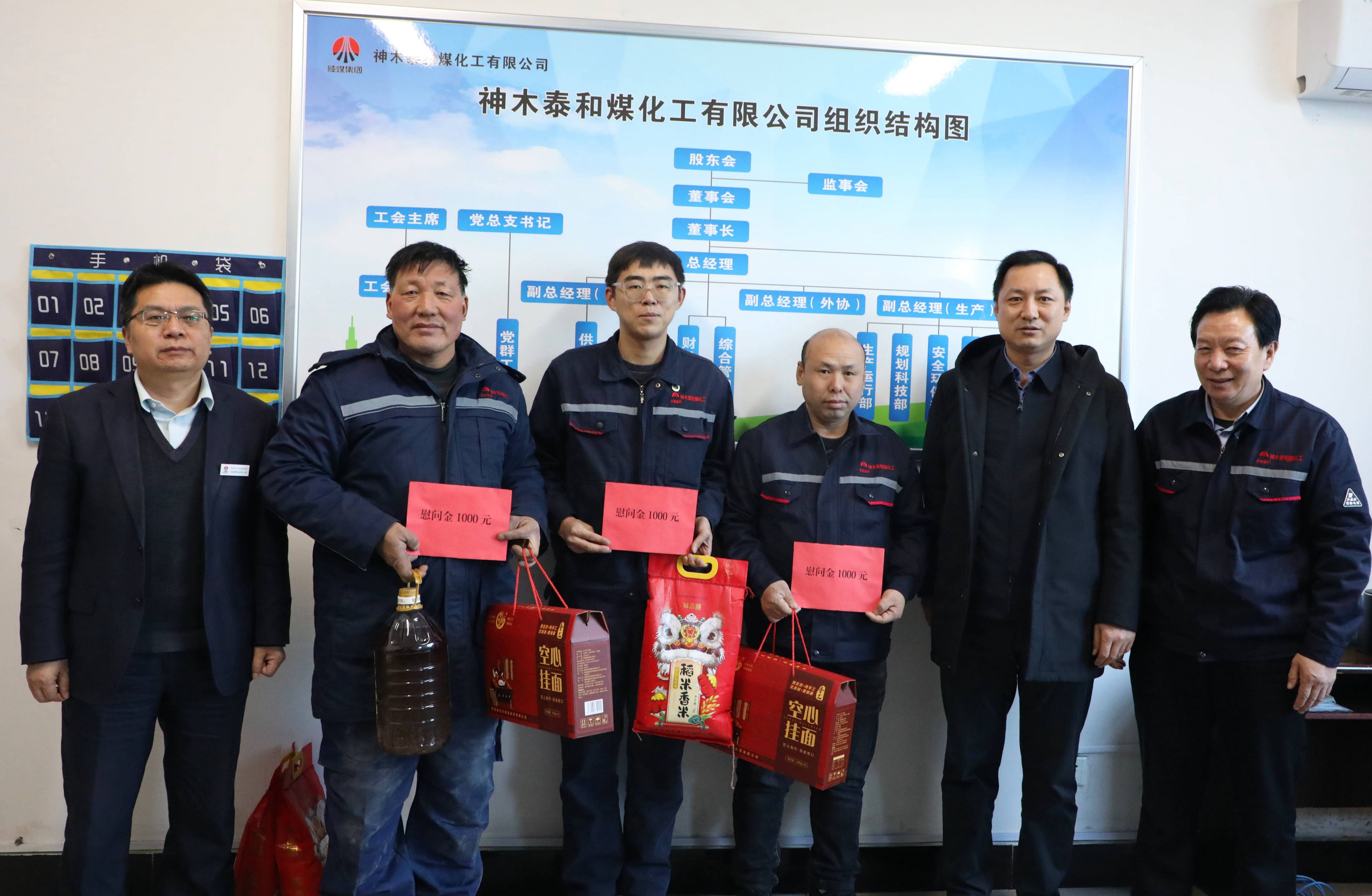 1月23日,神木煤化工公司黨委委員、紀委書記、泰和公司包抓領導田崟墻,紀檢監察部部長吉立功到泰和公司開展“送溫暖”走訪慰問活動。