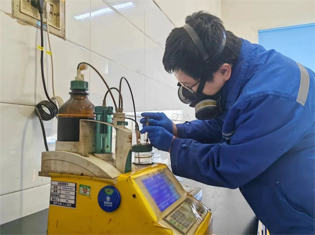 在質(zhì)量監(jiān)督部運(yùn)行一班,景飛國(guó)正在進(jìn)行油品水分分析,只見他細(xì)心地對(duì)自動(dòng)水分儀進(jìn)行標(biāo)定,將油品混勻,用玻璃注射器取少許樣品放在天平室,利用差減法,獲取樣品質(zhì)量,待儀器達(dá)到平衡后,按參數(shù)設(shè)定輸入樣品質(zhì)量,讀取分析結(jié)果,并仔細(xì)核對(duì)數(shù)據(jù)。他說(shuō):“在崗一分鐘,盡職六十秒。化驗(yàn)分析是安全生產(chǎn)的眼睛,要堅(jiān)持用數(shù)據(jù)說(shuō)話,安全操作、精心分析,切實(shí)把好產(chǎn)品質(zhì)量關(guān)”。據(jù)了解,截至自2月12日,節(jié)日期間質(zhì)量監(jiān)督部共計(jì)分析樣品60余個(gè),完成油品、氣體、水質(zhì)分析300余項(xiàng)。