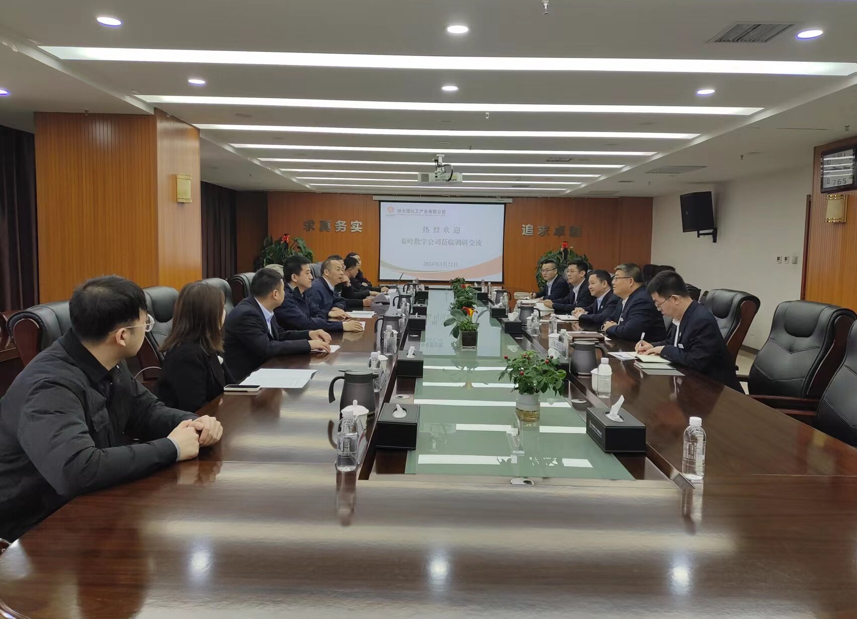 3月21日,秦嶺數字科技有限責任公司總經理李振一行到公司座談交流。公司黨委副書記、總經理辛文輝,總會計師王鑫峰,雙方有關單位及部門負責人參加座談會。