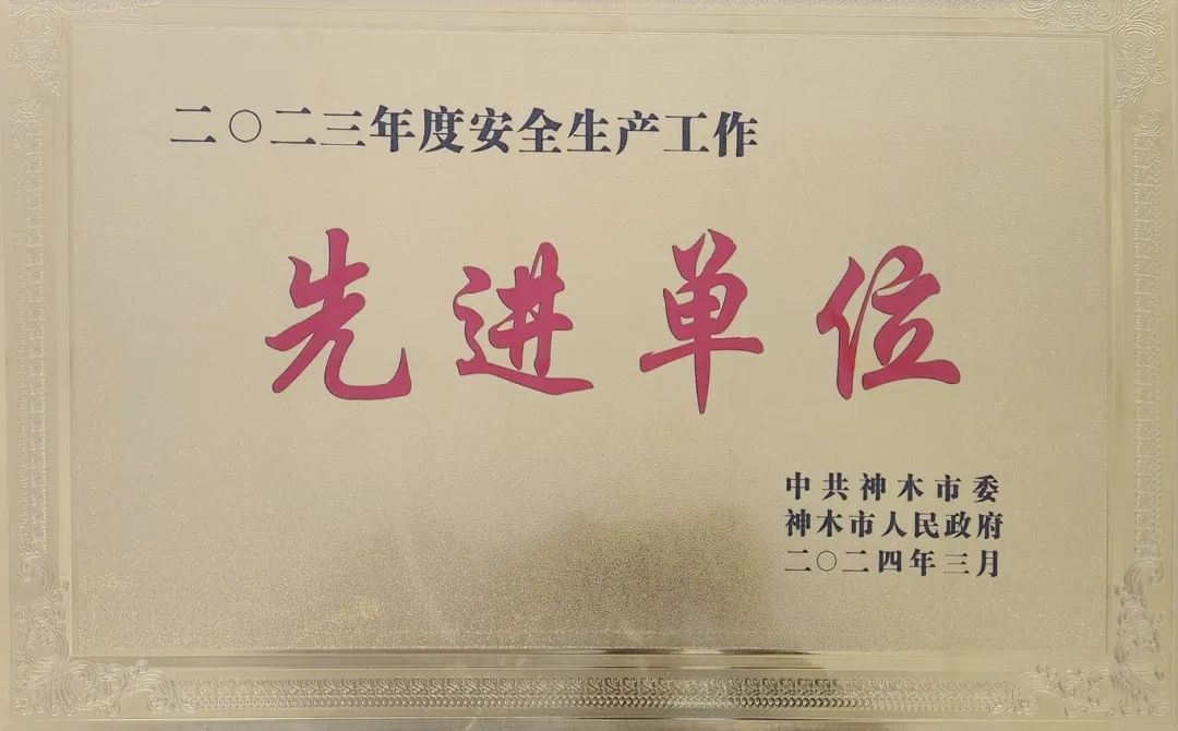 能源公司榮獲神木市“2023年度安全生產工作先進單位”稱號