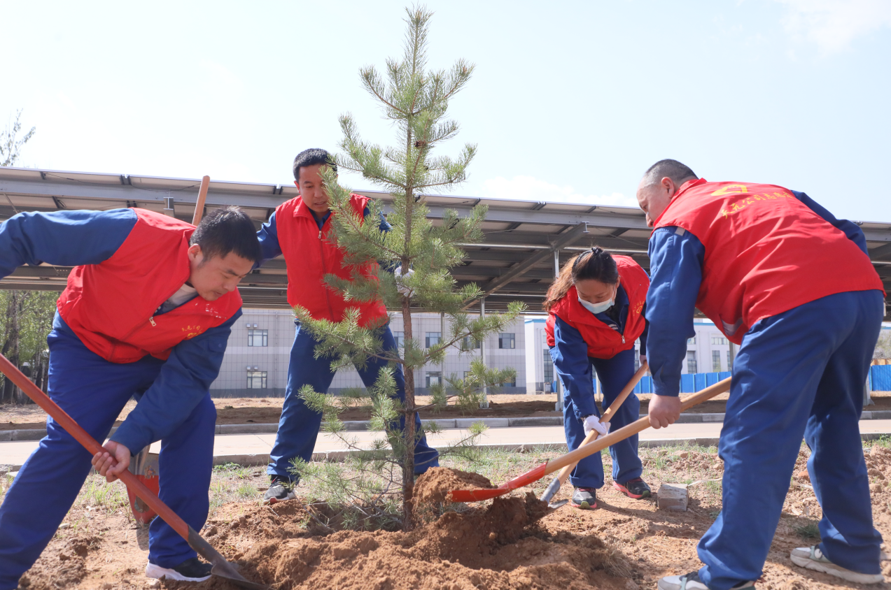 活動(dòng)中,志愿們干勁十足、分工明確,或兩人一組,或三五搭檔,揮鍬鏟土、扶樹正苗、培土圍堰……各個(gè)環(huán)節(jié)都井然有序,現(xiàn)場一片繁忙景象。最終,經(jīng)過一番辛勤勞作,40余棵樟子松樹苗迎風(fēng)挺立,在明媚的春光中煥發(fā)出勃勃生機(jī),給春日的廠區(qū)增添了一抹靚麗的景色。