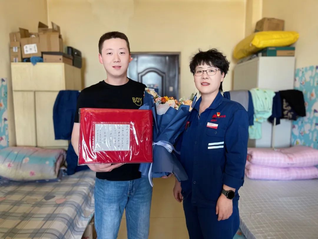 “沒想到結婚公司還給發慰問品,真是太高興了,感謝組織的關懷,我是2020年6月進入能源公司的,再有一個月就整整4年了。在這里成長、工作、結婚,親眼見證了公司的蓬勃發展。”該公司原料車間劉盼盼深有感觸地說道。
