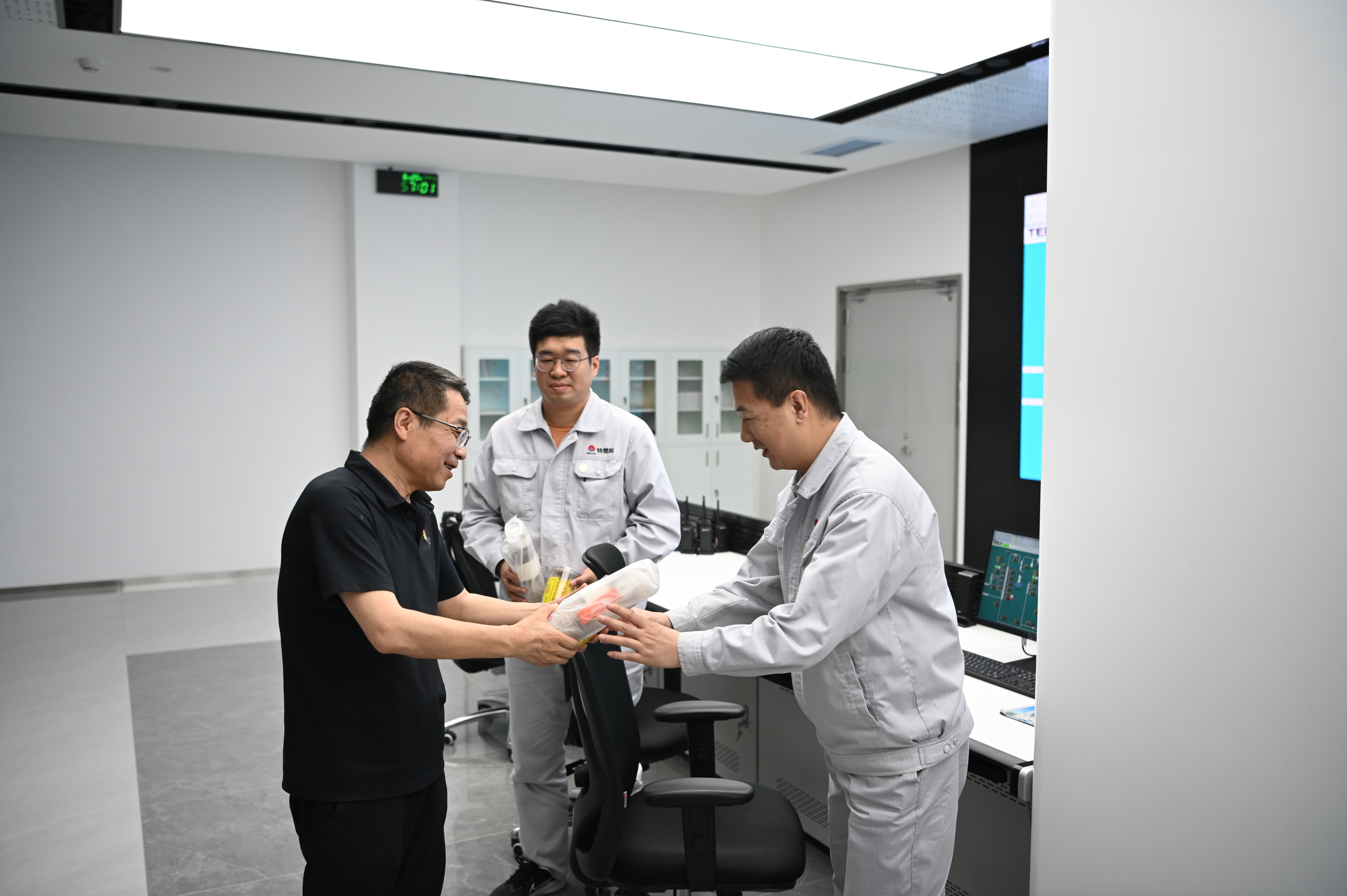 隨后,馬忠印來到中控室,實(shí)地查看了員工的工作環(huán)境和防暑措施落實(shí)情況。他詳細(xì)詢問了員工們的工作狀況和身體狀況,并對特燃院在高溫天氣下采取的一系列防暑降溫措施給予了肯定。他強(qiáng)調(diào),科研工作是特燃院發(fā)展的核心動(dòng)力,每一位員工的付出都至關(guān)重要。我們將一如既往地支持大家,為你們提供更好的工作條件,確保每一位員工都能在安全、舒適的環(huán)境中工作。