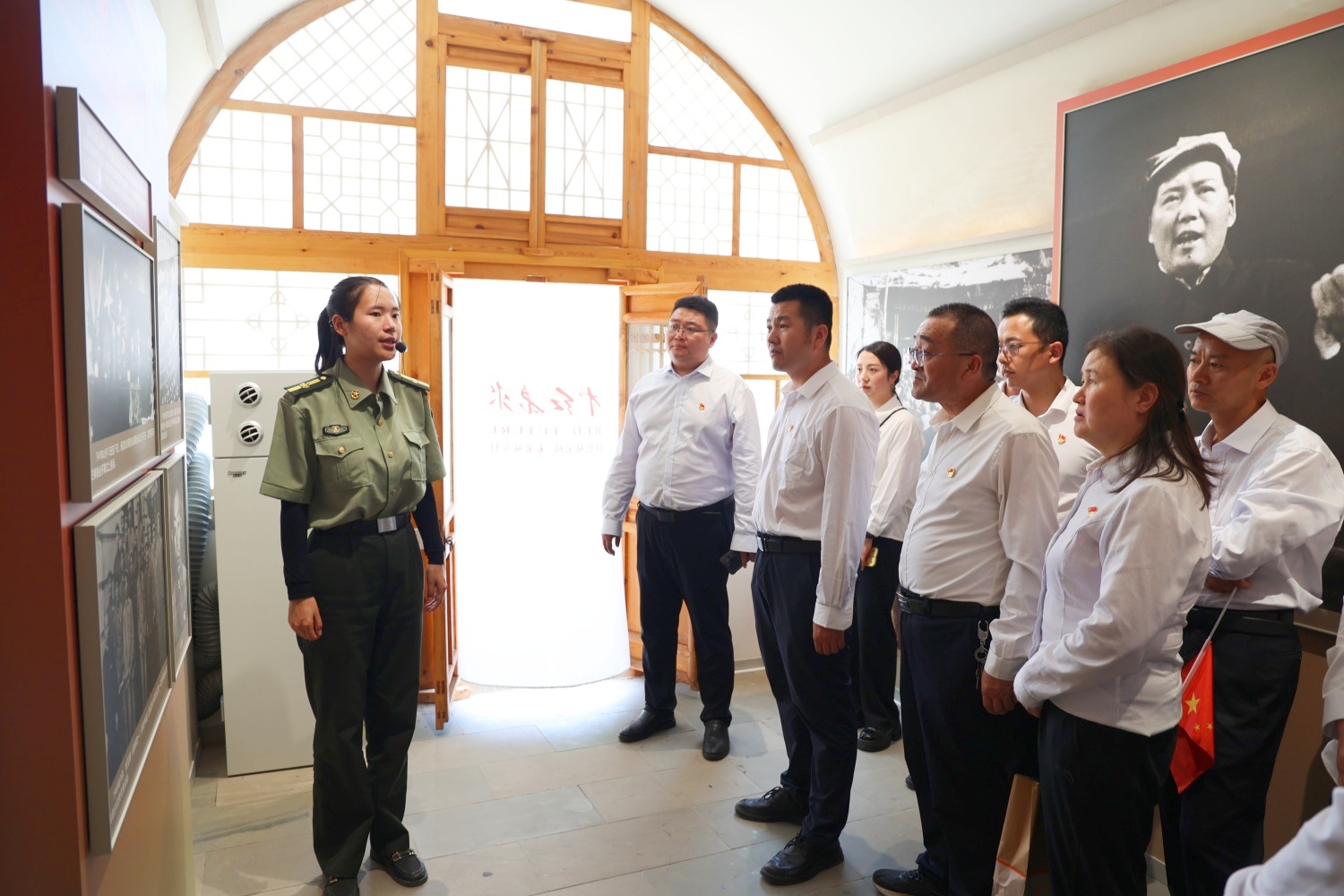在講解員的引導(dǎo)下,全體人員參觀了綏德革命紀(jì)念館。館內(nèi)展陳以“西北人民革命的一面光輝旗幟”為主題,布設(shè)“西北革命運(yùn)動(dòng)興起的策源地”“陜北土地革命斗爭(zhēng)的中心區(qū)”“抗日民主根據(jù)地的模范區(qū)”“奪取全國(guó)勝利的出發(fā)點(diǎn)”四大板塊,全面展示了中國(guó)共產(chǎn)黨在綏德、榆林乃至西北地區(qū)波瀾壯闊的革命歷程。一幕幕歷史畫面徐徐展開,一則則動(dòng)人故事娓娓道來,大家踏著革命偉人和先烈們的足跡,緬懷毛澤東、周恩來、習(xí)仲勛等老一輩革命家為了民族獨(dú)立和解放,戰(zhàn)天斗地,改天換日的革命歷程,全體黨員重溫了入黨誓詞。