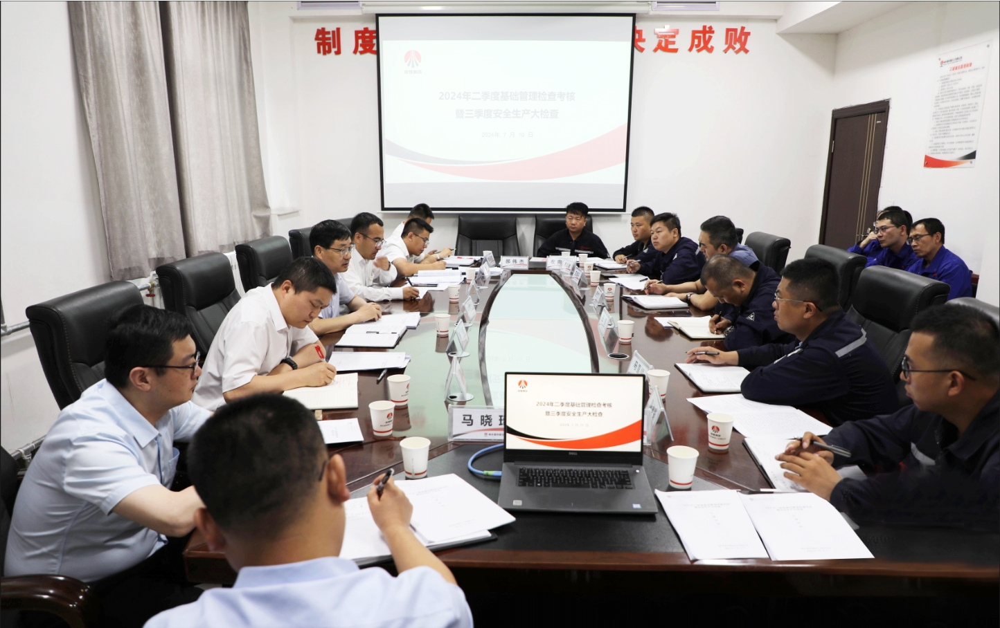 7月10日,公司黨委副書記、總經(jīng)理辛文輝,副總經(jīng)理問緒忠一行到泰和公司開展2024年二季度基礎(chǔ)管理考核暨三季度安全生產(chǎn)大檢查。泰和公司領(lǐng)導(dǎo)班子成員及相關(guān)業(yè)務(wù)負(fù)責(zé)人配合檢查。
