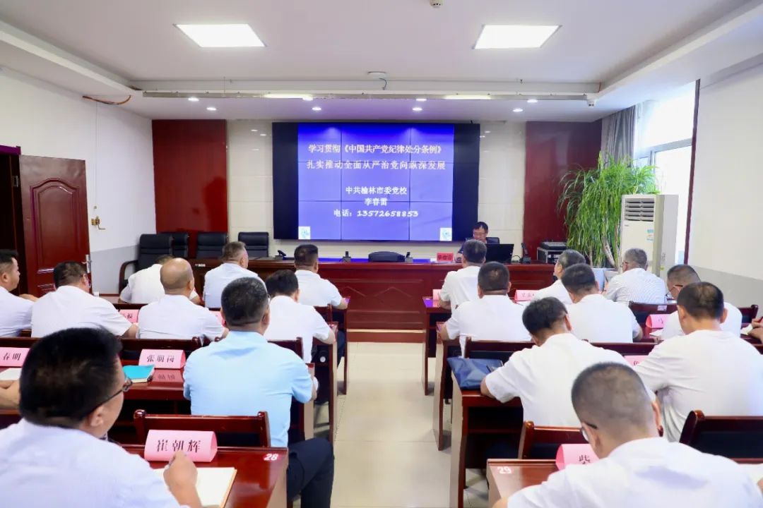 參觀結束后,在榆陽區委黨校開展了《中國共產黨紀律處分條例》專題輔導,榆林市委黨校李春雷教授從深刻認識紀律嚴明的重大意義、準確把握《條例》修訂的主要內容及抓好《條例》的貫徹執行三個方面,進行了政策理論闡述和解讀, 進一步加深了黨員干部對各項紀律規定的認識和理解,切實把學習黨紀轉化為增強廉潔自律、提升黨性修養的全過程。輔導前,集中觀看了廉政教育系列參考片《清除國企蛀蟲》。
