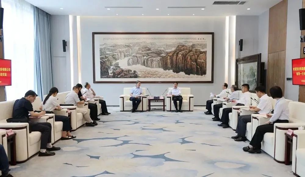8月16日上午,浩吉鐵路公司黨委副書記、總經理黃鑫,黨委委員、副總經理金成旭一行到陜煤集團座談交流。陜煤集團黨委書記、董事長張文琪,黨委副書記、董事、總經理趙福堂參加座談。