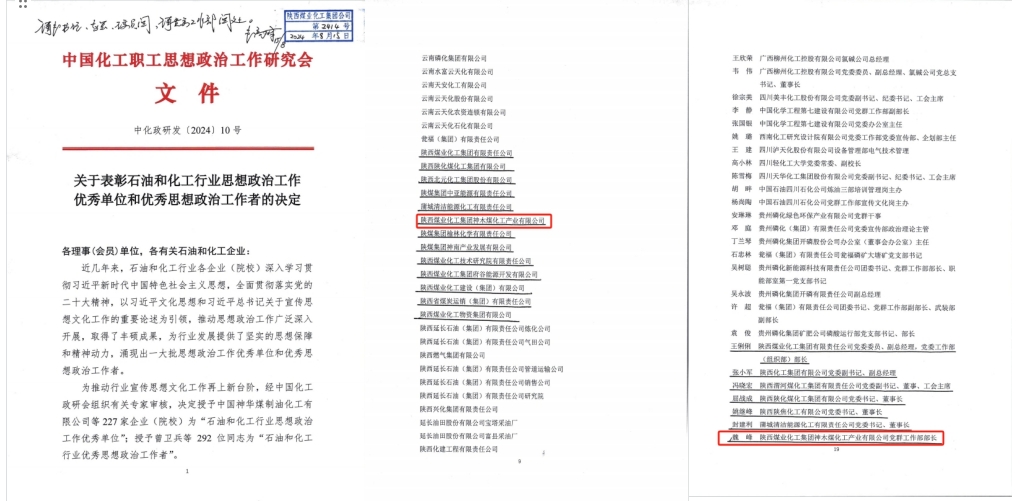 近日,中國(guó)化工職工思想政治工作研究會(huì)下發(fā)文件,公司榮獲石油和化工行業(yè)思想政治工作優(yōu)秀單位稱號(hào)。