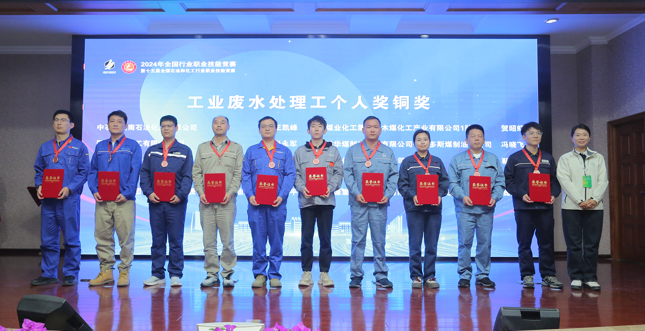 在公司參賽隊伍中,由武建洲、賀昭蝦、李偉、李龍組成的神木煤化工1隊分別獲得工業廢水處理工團體二等獎、化工儀表維修工團體優勝獎;由郭亮、王輝、郭江平、王永鋒組成的神木煤化工2隊分別獲得工業廢水處理工、化工儀表維修工團體三等獎;賀昭蝦獲得工業廢水處理工個人銅獎。