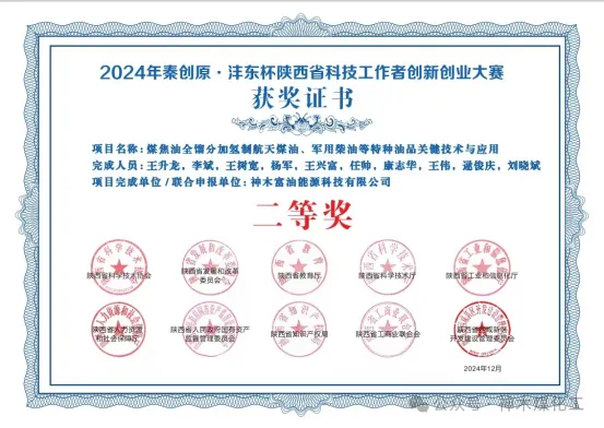 奮進陜煤|神木煤化工富油公司在2024年陜西省科技工作者創新創業大賽中獲二等獎