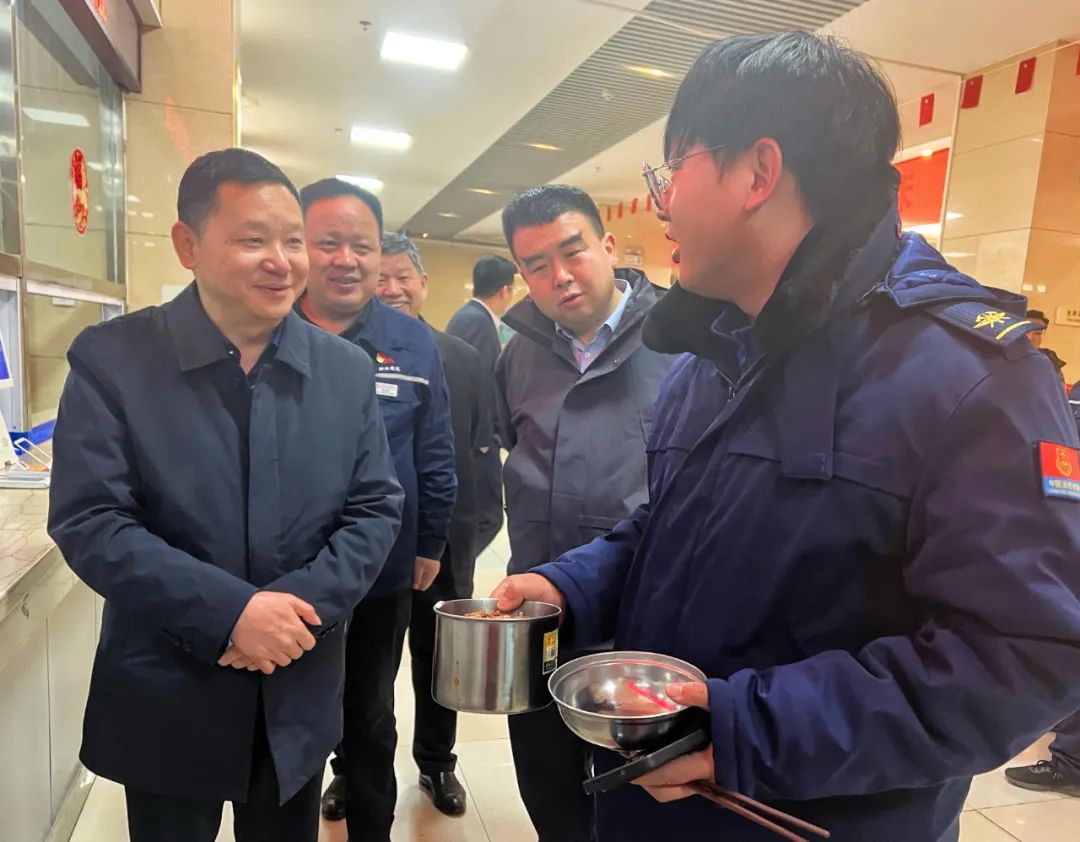 在電化公司生產現場,辛文輝一行實地察看了熱電機組運行工況、集控操作等情況,詳細聽取了各環節生產裝置運行、原料儲備、安全管理措施落實、節日期間值班值守安排等情況匯報。在職工餐廳,辛文輝來到打飯窗口了解飯菜品種、午餐供應等情況,并與員工親切交流,詢問節日期間他們的生活保障落實情況。