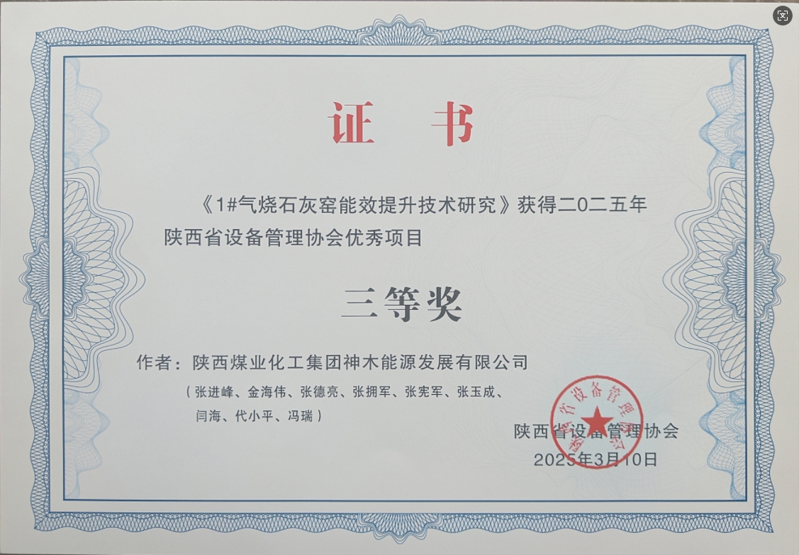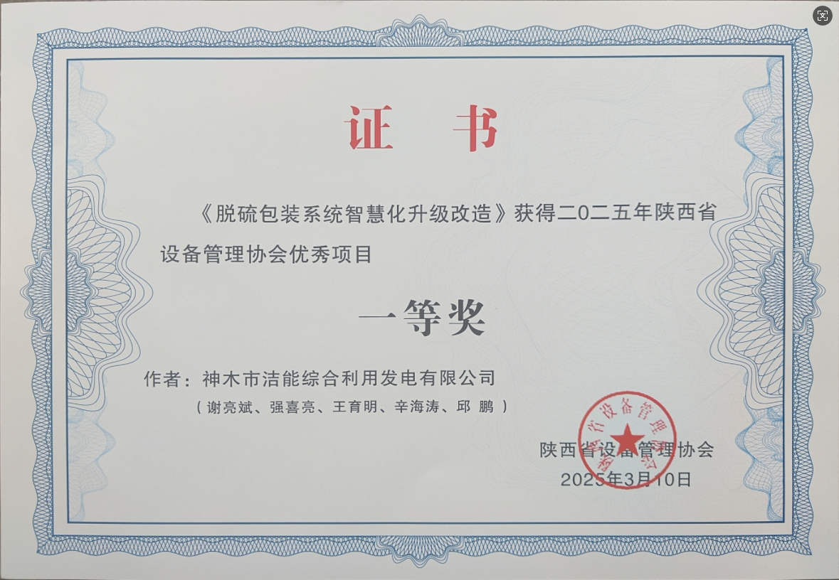 近日,2025年陜西省設(shè)備管理協(xié)會(huì)優(yōu)秀項(xiàng)目評(píng)選結(jié)果正式揭曉,神木煤化工公司申報(bào)的《脫硫包裝系統(tǒng)智慧化升級(jí)改造》項(xiàng)目榮獲一等獎(jiǎng),《1#氣燒石灰窯能效提升技術(shù)研究》和《鍋爐智能優(yōu)化控制技術(shù)應(yīng)用》項(xiàng)目榮獲三等獎(jiǎng),《反滲透外排水回收改造》項(xiàng)目榮獲優(yōu)秀獎(jiǎng)。