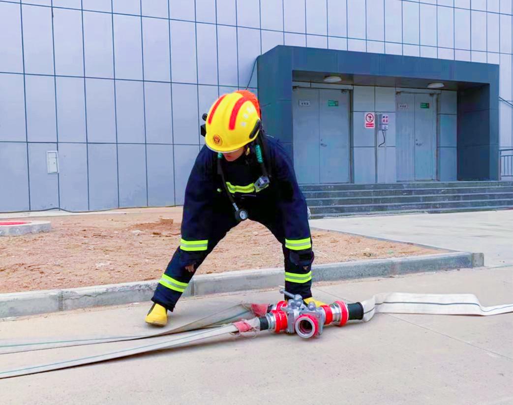 訓練場上,筆者看到專職消防隊員們穿著10多公斤的全套防護裝備,包括像棉被一樣厚的戰斗服、沉甸甸的滅火頭盔、戰斗靴、安全腰帶等,還要背著15公斤左右的空氣呼吸器,一邊快速奔跑,一邊接水帶。一次又一次的反復訓練,汗水已經浸透他們的裝備,但他們仍然能夠拿出百分之百的精力投入到訓練中,確保每一個動作都做到準確無誤。