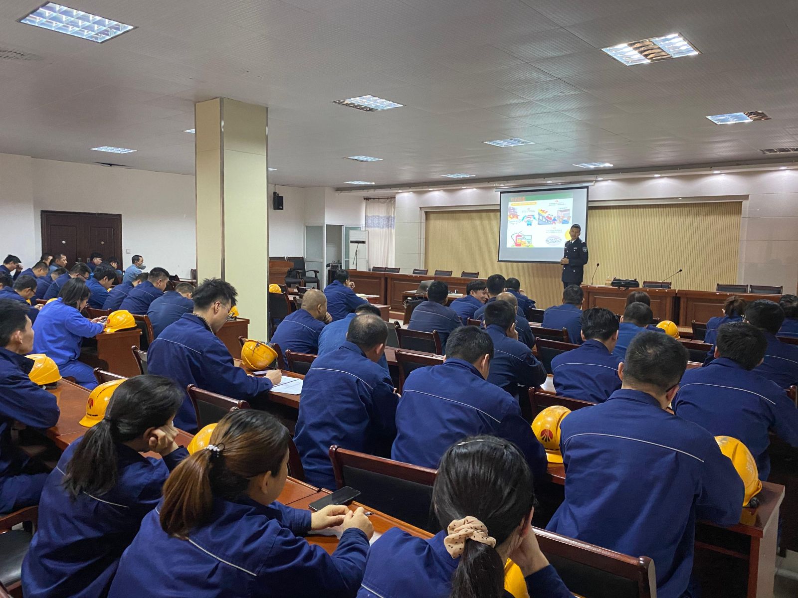 近日,能源公司邀請榆林市億安消防宣傳中心曹林軍教官進行了消防安全知識培訓,詳細講解了各崗位所涉及的相關消防安全知識、火災類型、滅火器的選用、滅火器的使用方法及日常火災隱患排查。通過培訓使員工對各崗位生產火災危險性、預防火災的措施和撲救火災的方法加深了了解。熟練掌握報警、使用滅火器材及消防設備、撲救初起火災的方法,利用培訓和實際操作相結合的方式進一步提高公司員工的消防安全意識和應對初起火災的處置能力。