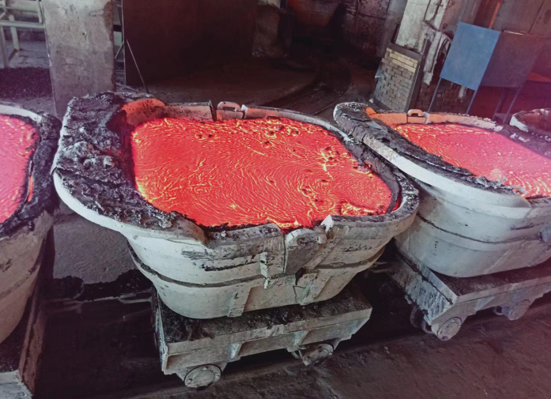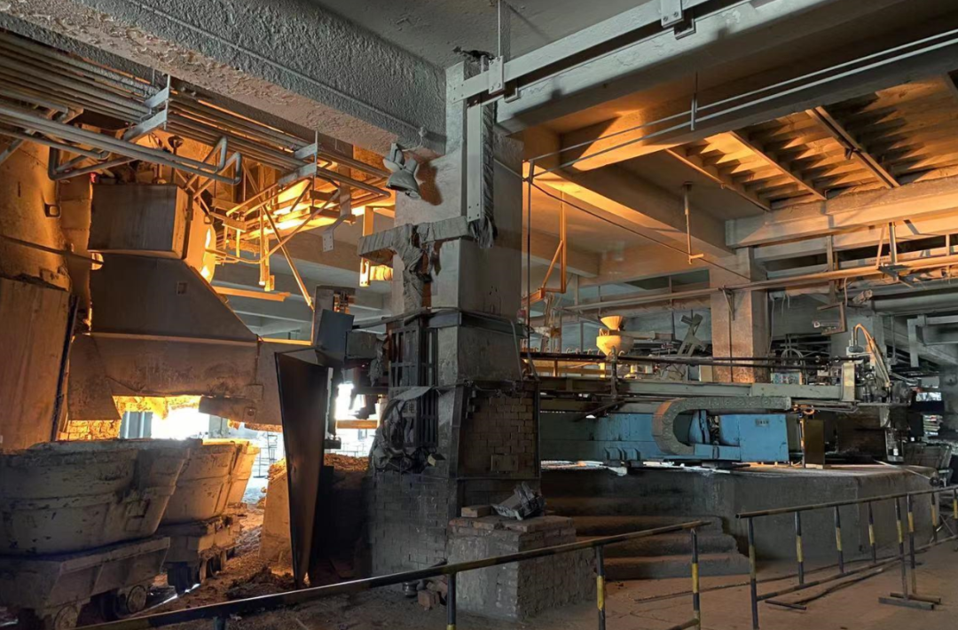 走進(jìn)電化公司電石出爐層,行車(chē)在奔跑,風(fēng)機(jī)在轟鳴,出爐口火花飛濺,電石流滾滾,將5米平臺(tái)照耀的如同白晝一般,視野所觸及的地方都是耀眼的弧光。隨著出爐機(jī)的不斷帶釬,經(jīng)過(guò)電石爐膛高溫熔煉生成的電石流奔騰而出,一鍋又一鍋紅熱的電石成品順著軌道緩緩地運(yùn)入冷卻車(chē)間......