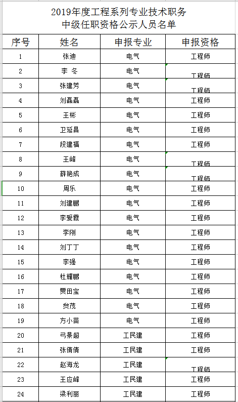 2019年度工程系列專業(yè)技術職務初中級任職資格認定、評審結果公示