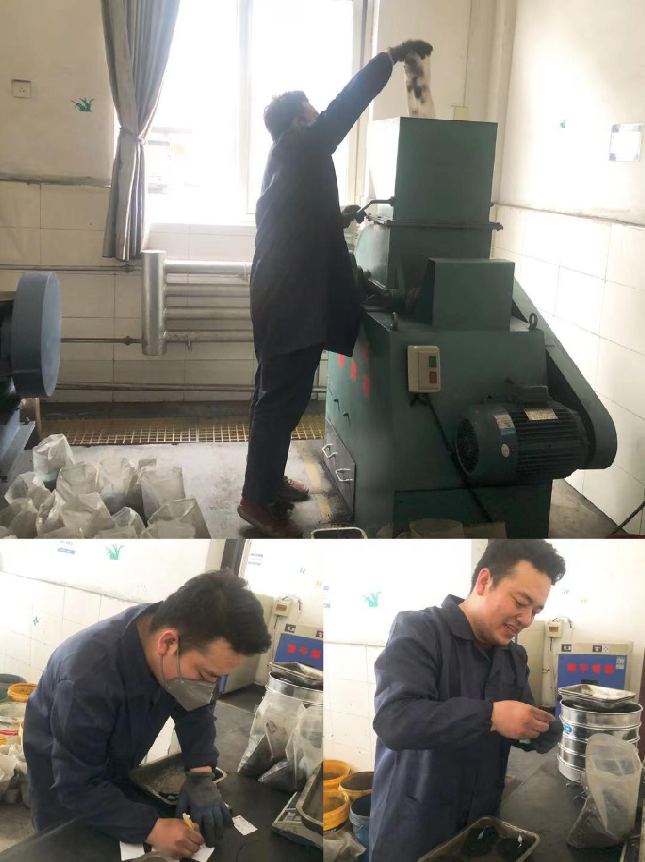 制樣的工作也是非常辛苦,將編制好的原料倒入攪拌機多次攪勻后過篩,再放入高溫爐加熱研磨裝樣送檢留存。整個流程一氣呵成后帥氣的小伙張勇勇已經汗流浹背了,頭發上、臉上、衣服上滿是煤泥的粉末,伴隨著汗珠的加持變成了一只大花貓,但只要你看見他,他會馬上露出大白牙,毫不吝嗇獻上自己溫暖的笑容。