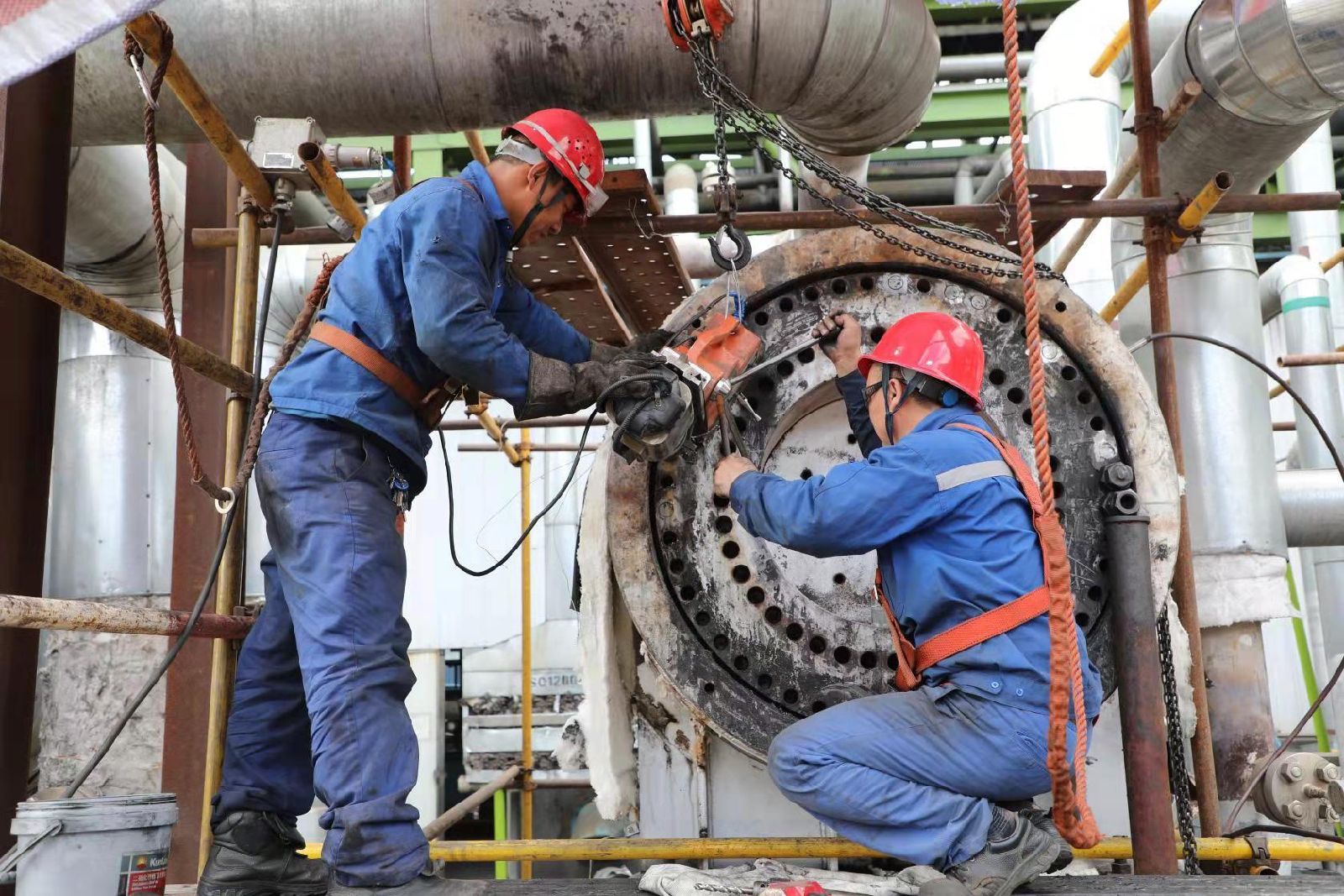 盛夏六月,天元公司各生產(chǎn)裝置大檢修工作如火如荼進(jìn)行著,天元公司全體干部職工齊心協(xié)力,通力配合,堅守在檢修一線。一個個忙碌的身影穿梭在裝置區(qū)內(nèi),在狹小的空間里焊接管線、抽堵盲板、拆裝設(shè)備……他們用辛勞詮釋著擔(dān)當(dāng),用汗水凝聚著力量,在平凡中孕育著“非凡”,為大檢修工作交出一份滿意的答卷。
