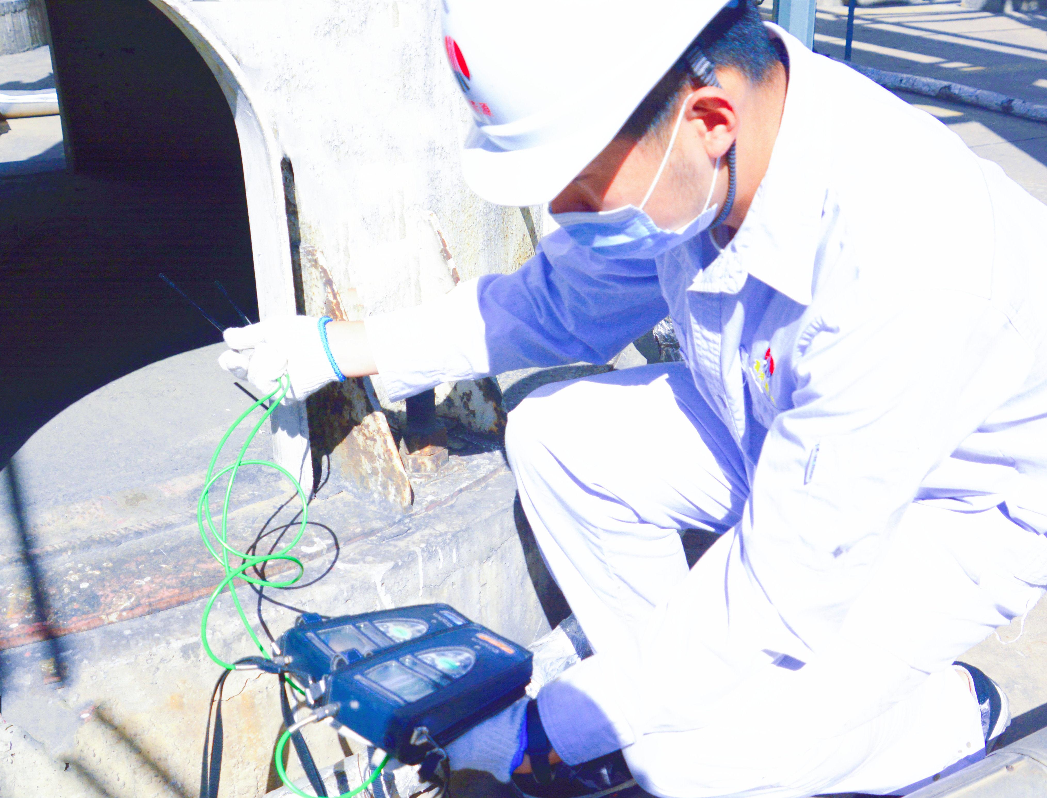 化驗員針對需要作業的精餾塔進行測氧測爆