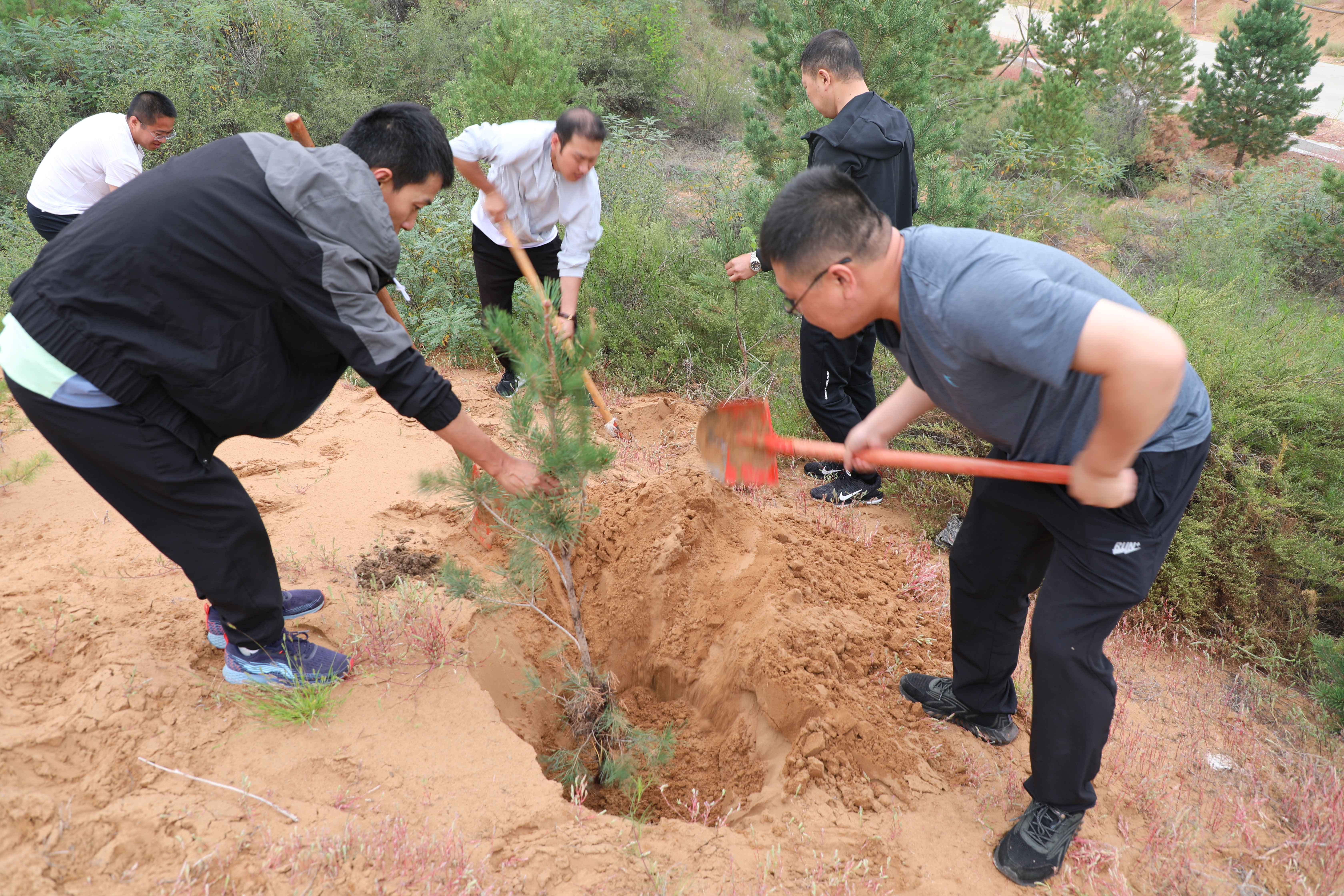 履行責任,沙地增綠。為了讓廣大黨員干部參與到生態(tài)文明建設(shè)的進程中,在此次培訓過程中,能源公司黨委還開展了“走進毛烏素沙漠 防砂治沙黨員先行”義務(wù)植樹活動。植樹現(xiàn)場,大家拿著鋤頭等工具,熱情高漲,干勁十足,50余棵樹苗被栽種在治沙基地。剛種植完,一場淅淅瀝瀝的細雨便如約而至,及時為補摘的樹苗補充水份。通過親身體驗植樹活動,大家用實際行動為家園增添一片新綠,為生態(tài)文明建設(shè)貢獻一份力量。最后,在學員們團結(jié)協(xié)作、相扶相持、不離不棄的團建活動中,培訓活動圓滿結(jié)束。