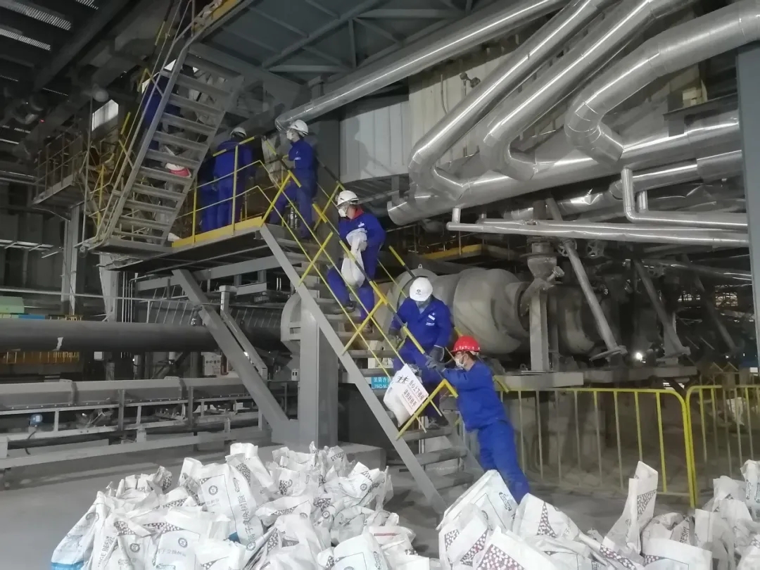 鍋爐備用過程中,上底料是最令人聞風喪膽的,整個過程塵土飛揚、體力消耗大,眾人都避之不及。可這些少年們卻主動請纓,爭先恐后報名。上底料的位置在二樓,為提高工作效率,他們臨時搭建了一條運輸底料“流水線”,副主任王劉清守在源頭,控制底料的輸出量,任帥和王小鵬在爐內負責裝底料。他們均勻分布,每隔幾層臺階就有一個人,直至爐內。拎、遞、倒,來來回回的重復動作,大家分工合作、默契十足,僅僅3個小時就圓滿完成了近300袋的底料裝填工作。