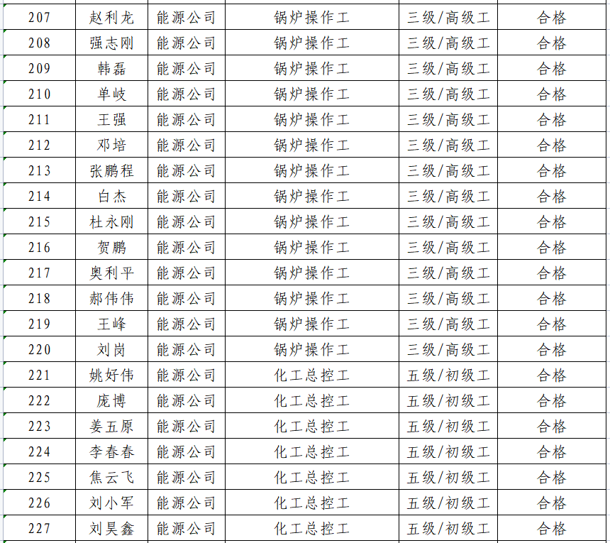 附件:神木煤化工公司2021年度職業技能等級認定初中高級擬通過人員名單